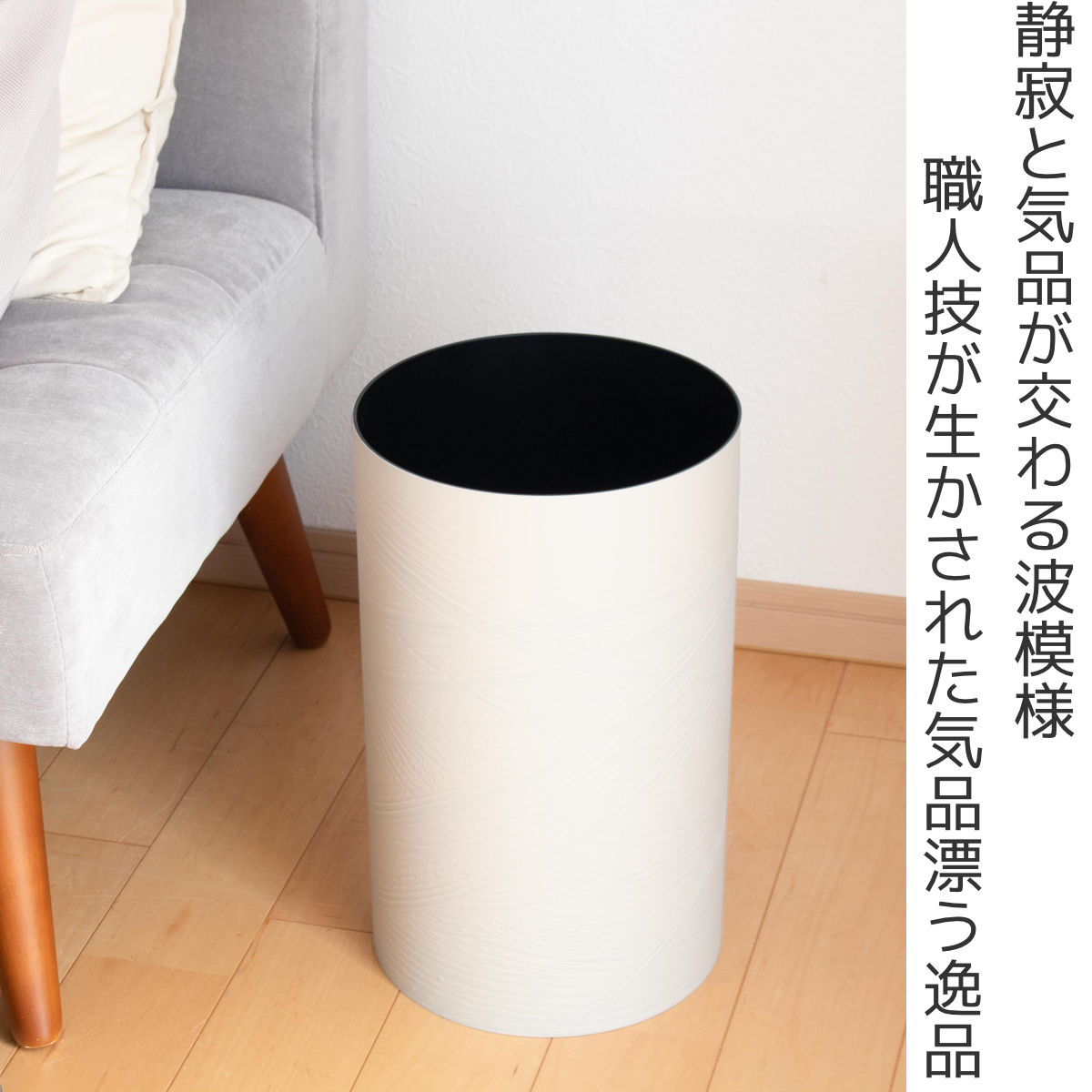 さざ波をモチーフに、塗り職人がひとつひとつ描き上げたダストボックスLサイズです。同じ模様がふたつとない、紀州漆器の職人技が生かされた逸品です。気品漂う雰囲気が感じられ、和室やリビング、どんな空間にも調和します。