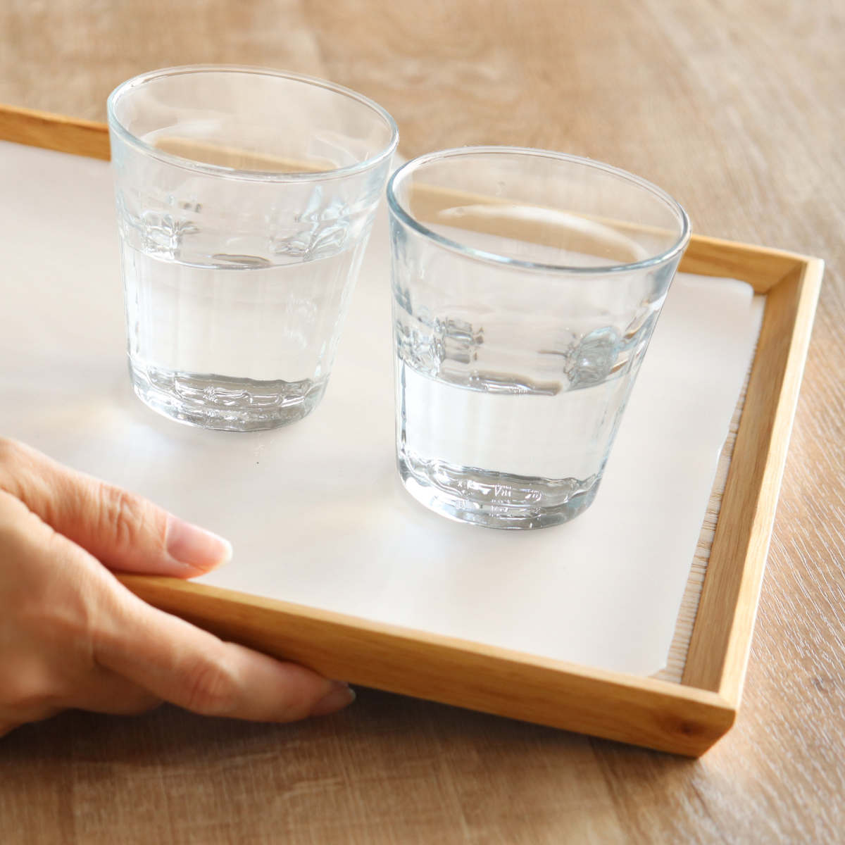 トレーに乗せると食器が滑りにくくなり、配膳の際に便利です。