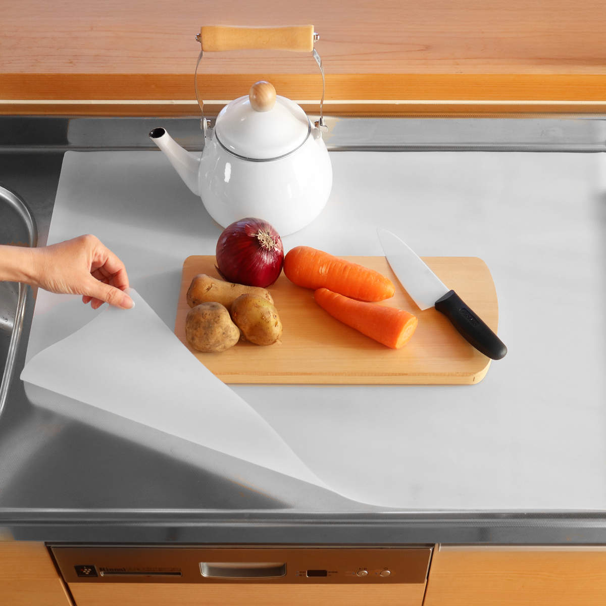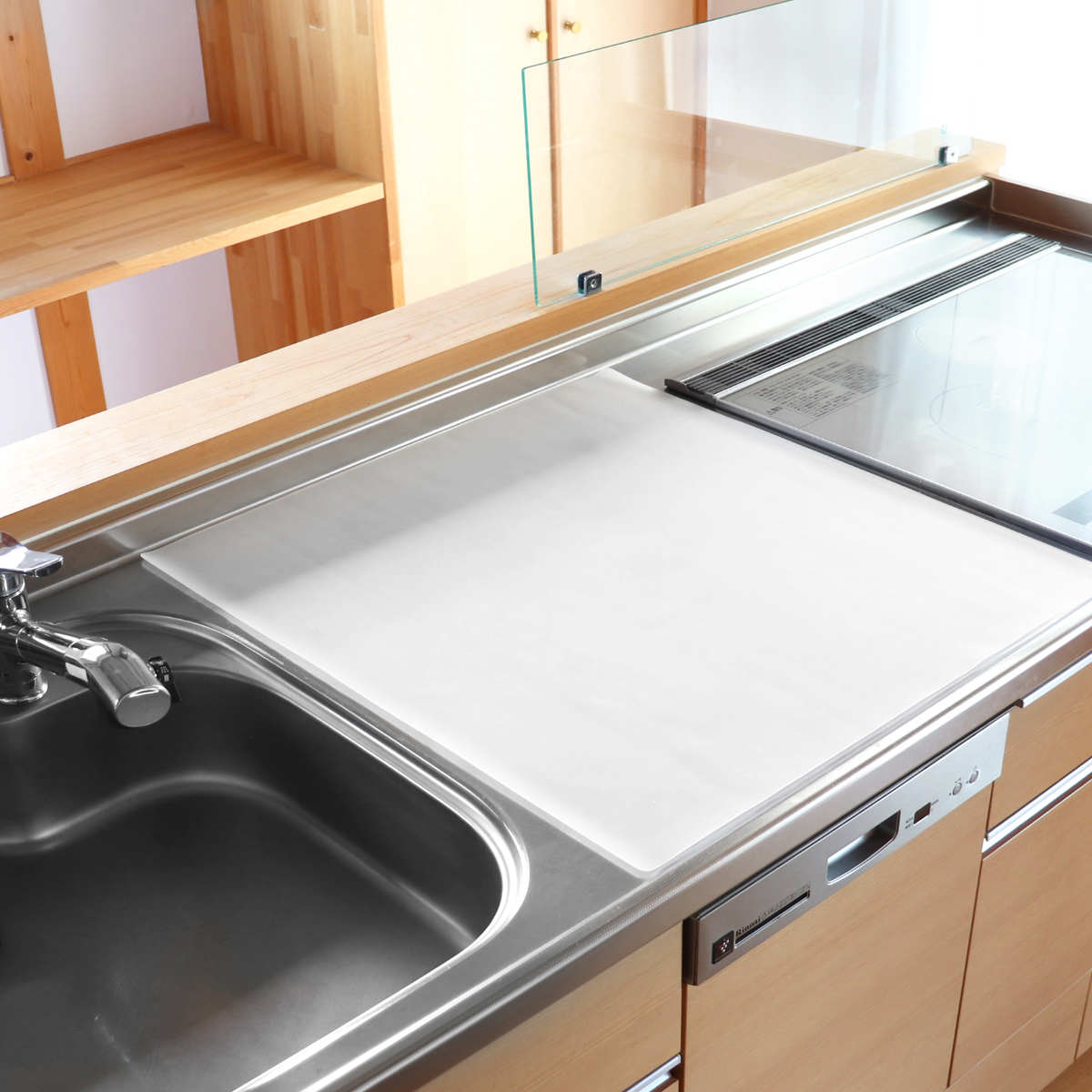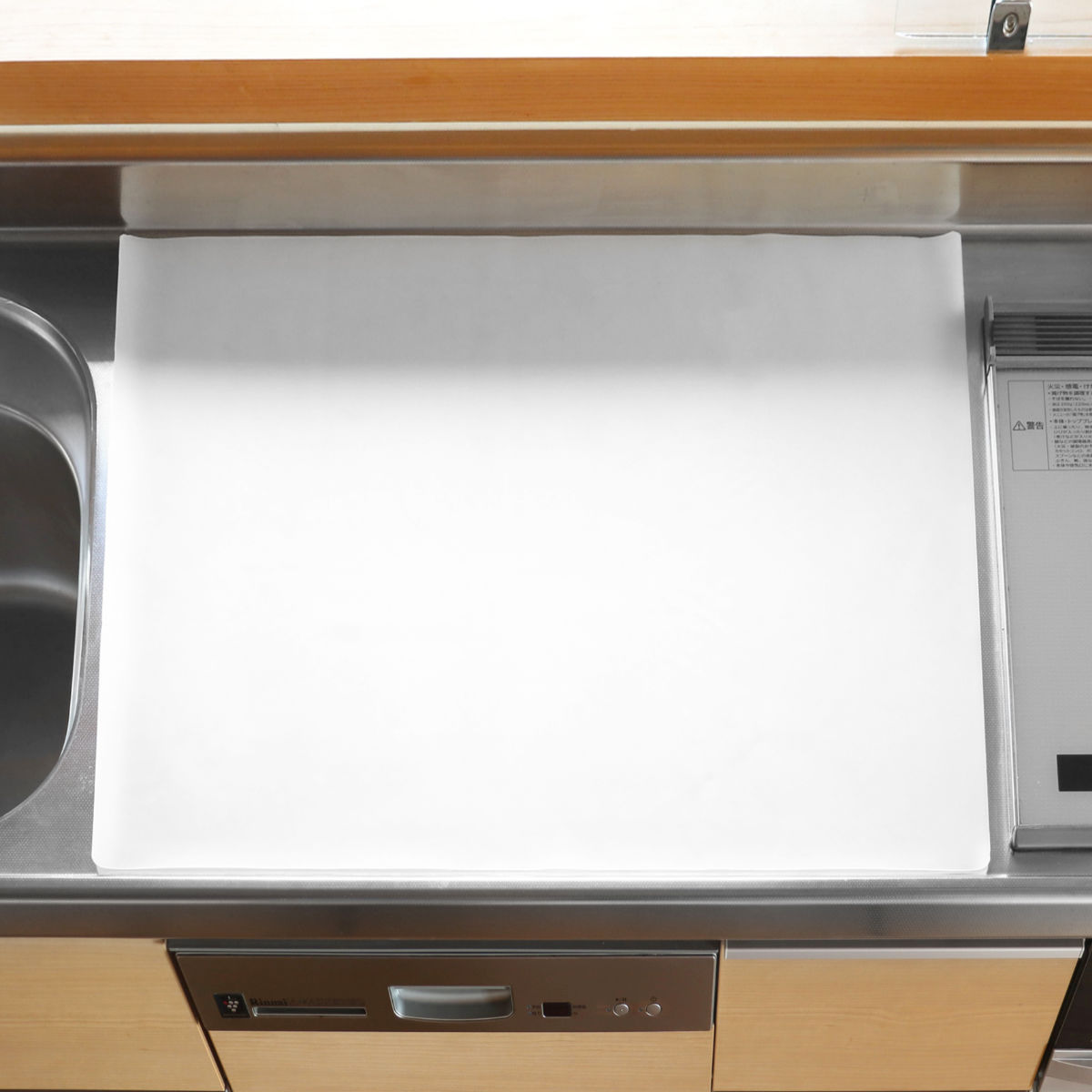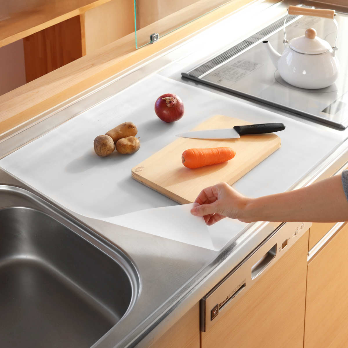 キッチンの人工大理石やステンレスの作業台に敷いてキズや汚れ、変色から守るマットです。また、耐久性にも優れているので長く使えます。