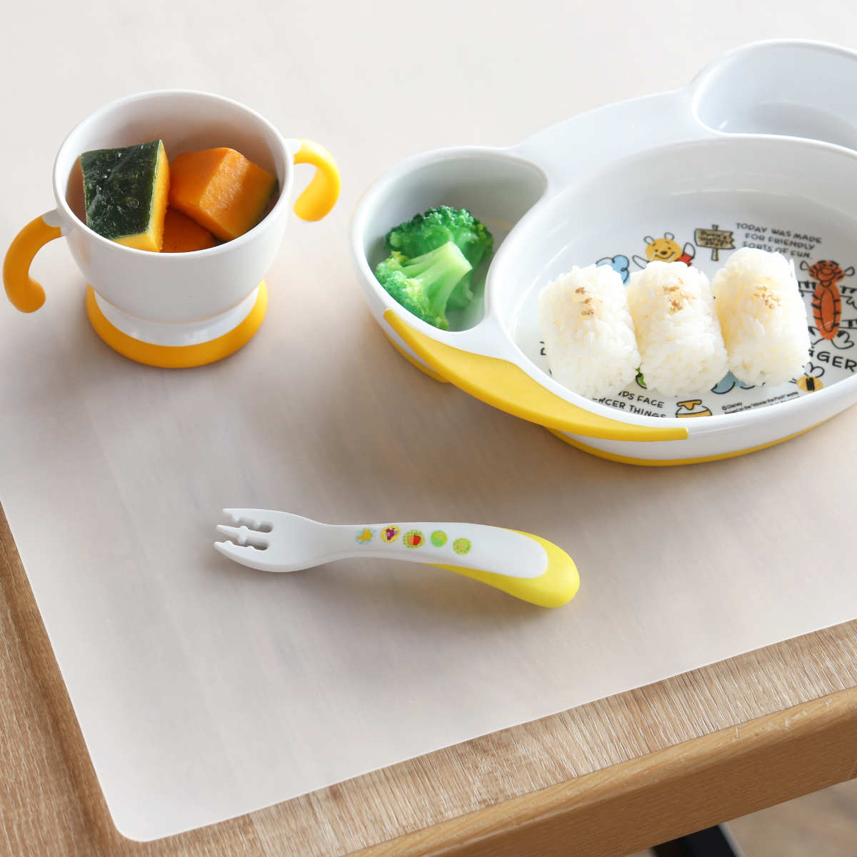 抗菌加工が施されており、菌の繁殖を抑制します。食器が滑りにくく、テーブルの汚れも防ぐのでお子様のお食事マットとしても使えます。