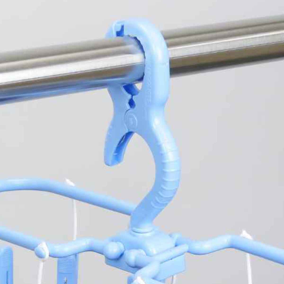 フック部分は風に強く掛け外しやすいキャッチ式です。竿をしっかり挟んで固定できます。ピンチは靴下やハンカチなどの小物を干す時に便利です。