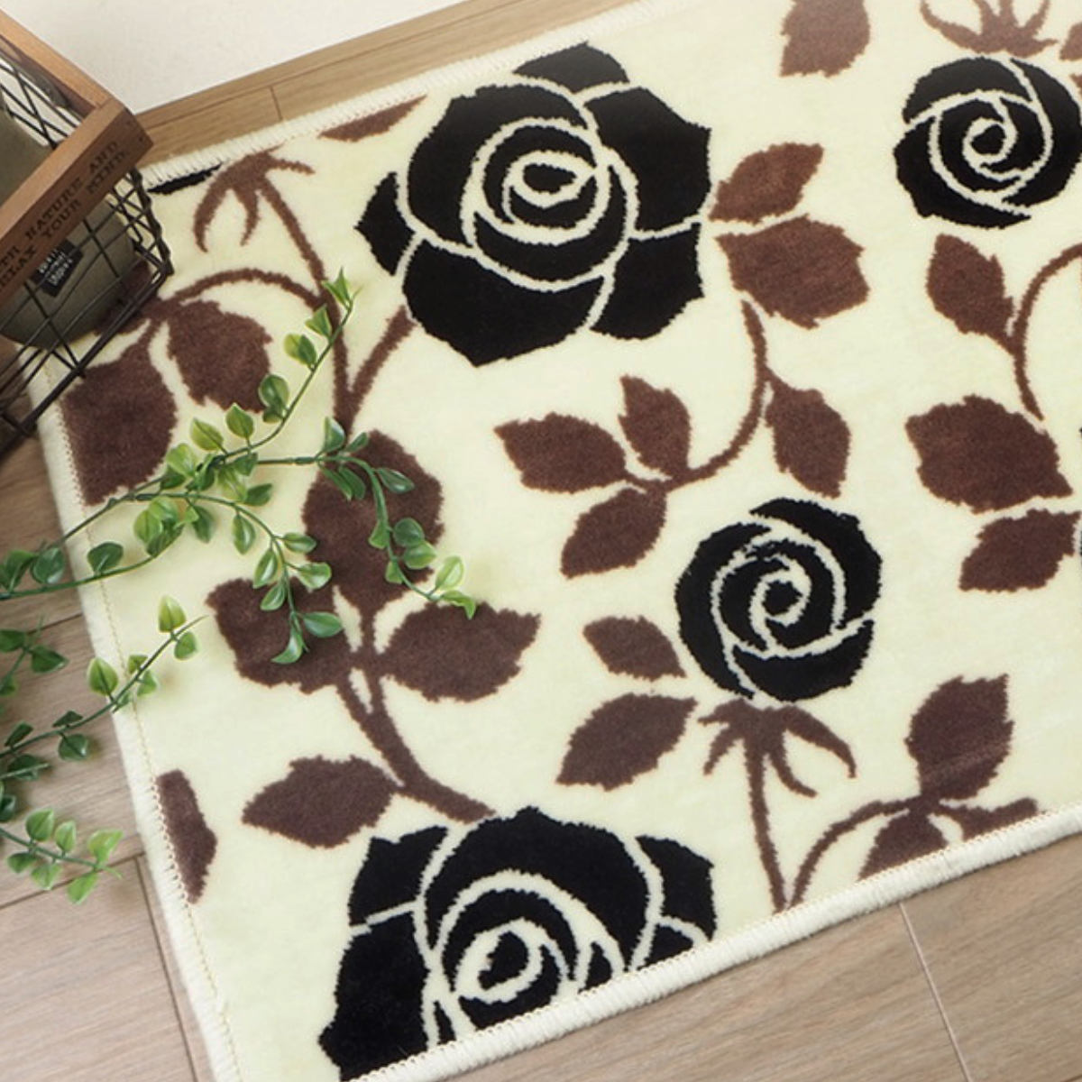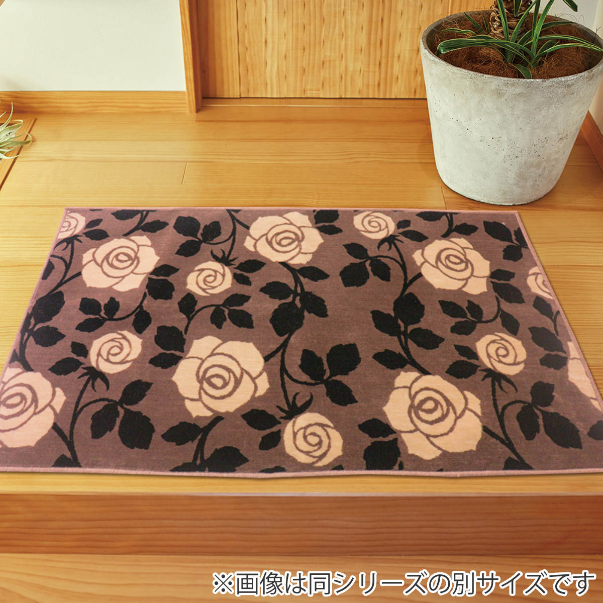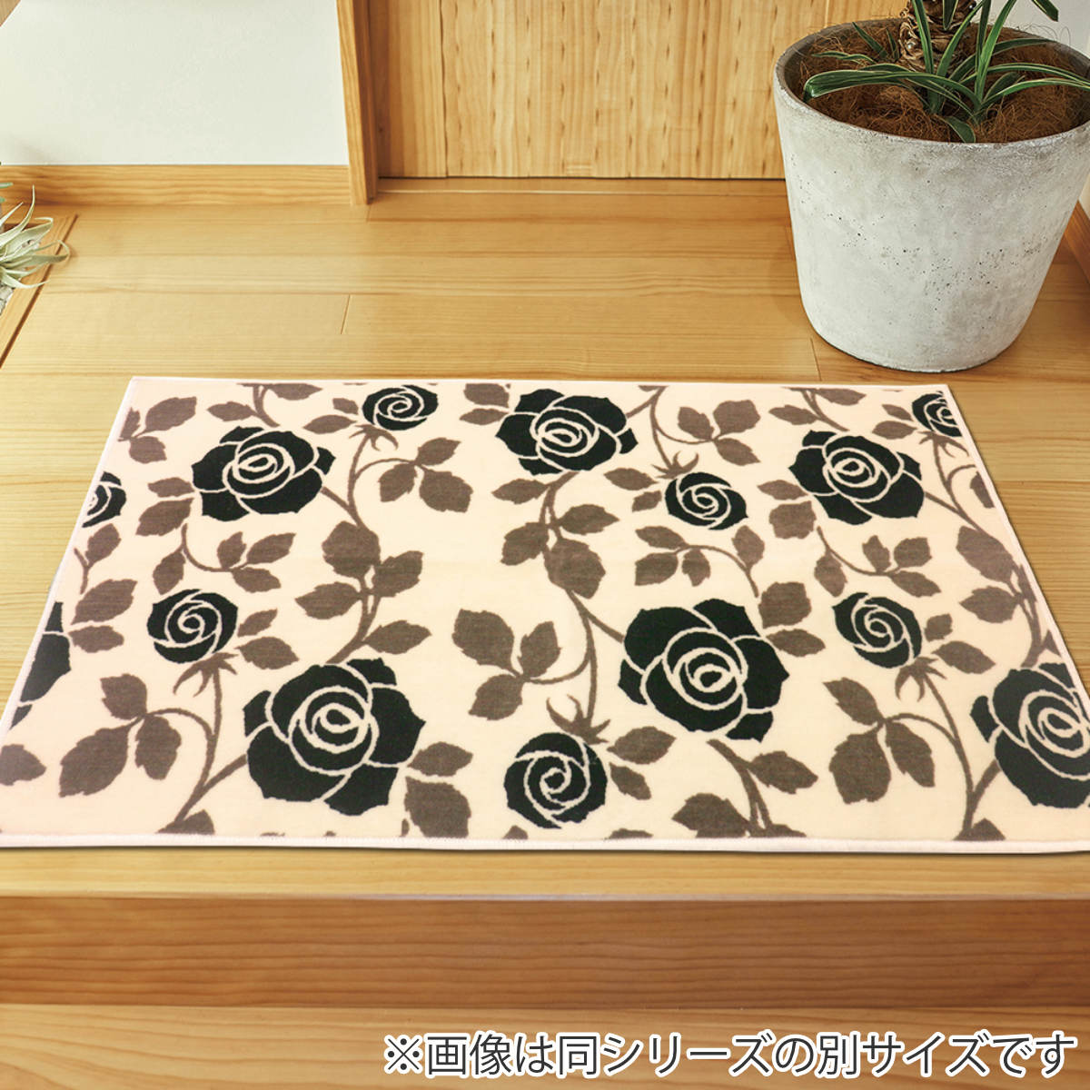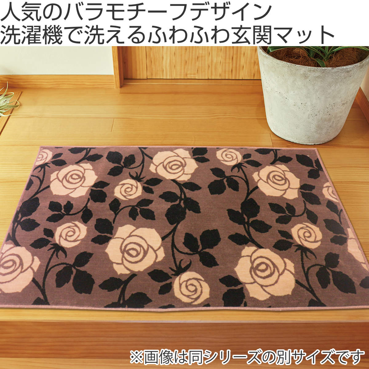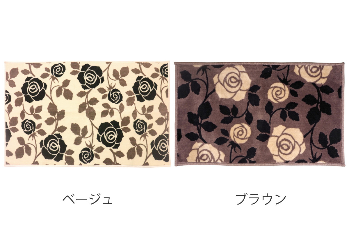 人気のバラモチーフデザイン、洗濯機で洗えるふわふわ玄関マット