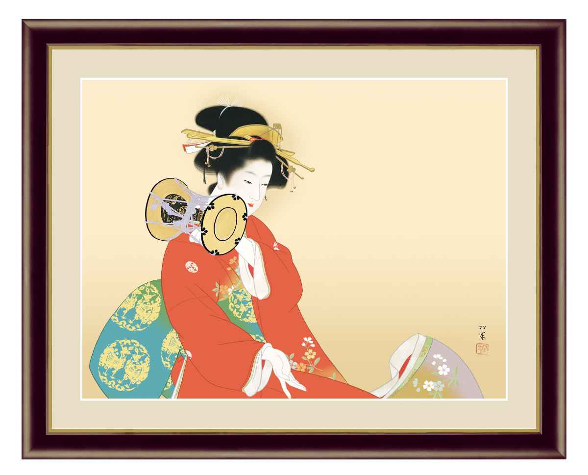 ●鼓を打つ若き令嬢を描いた、おだやかで気品あふれる女性が描かれた作品です。