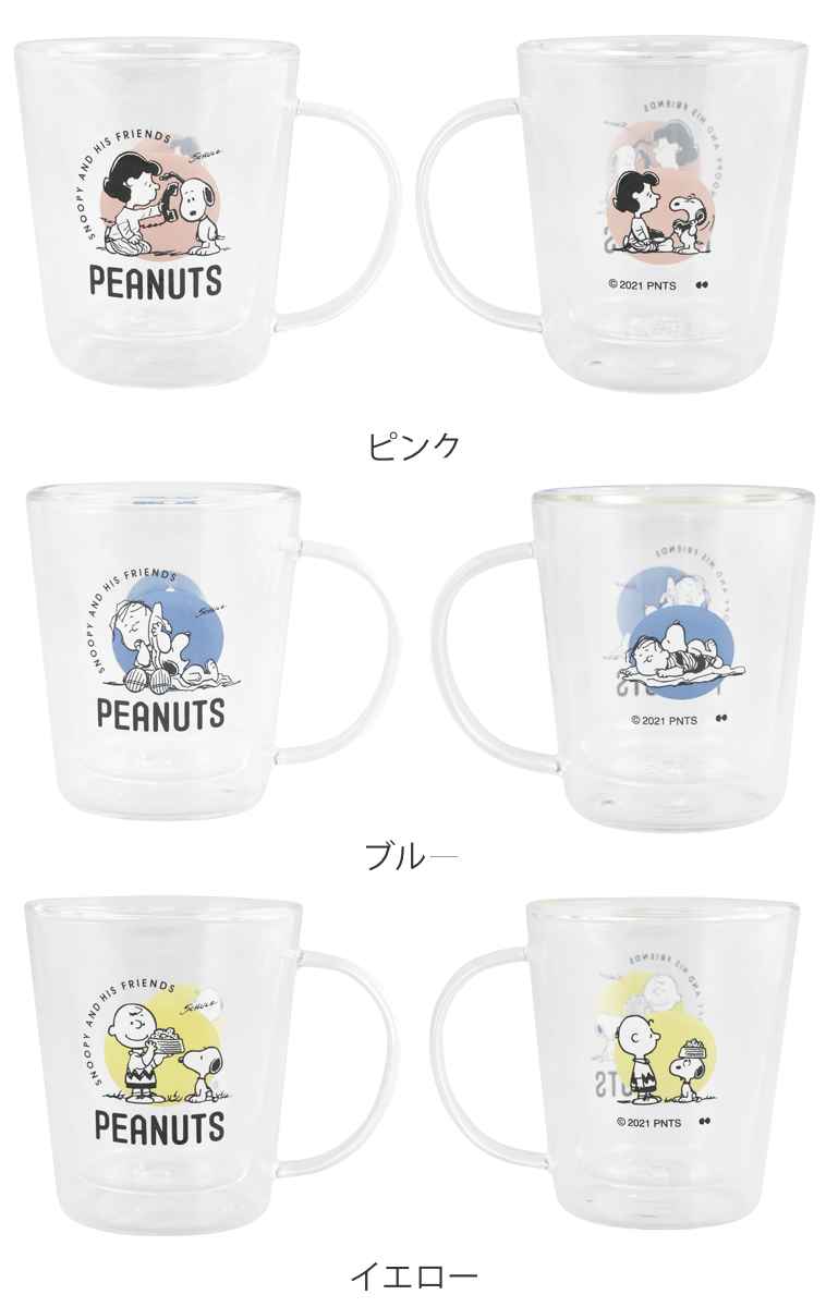 二重構造になったガラス製のマグカップです。耐熱グラスなので冷たい飲み物はもちろん、ホットコーヒーも楽しめます。色がきれいなハーブティーを入れるのもおすすめです。スヌーピーの可愛いイラストがアクセントになっています。