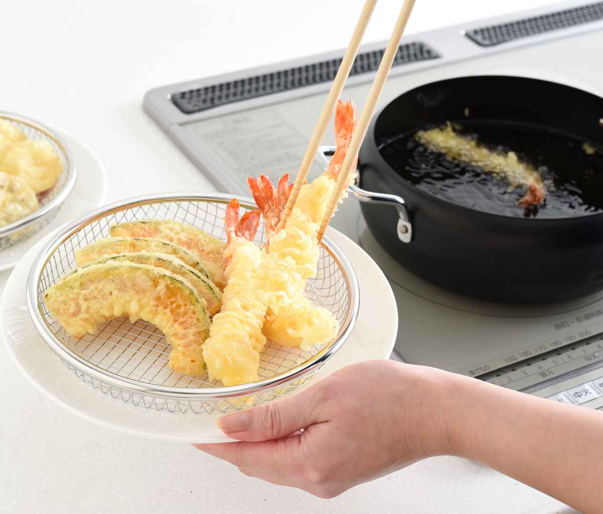 ●から揚げや天ぷらなどの油切りになり、揚げたてのサクサク食感をキープできます。