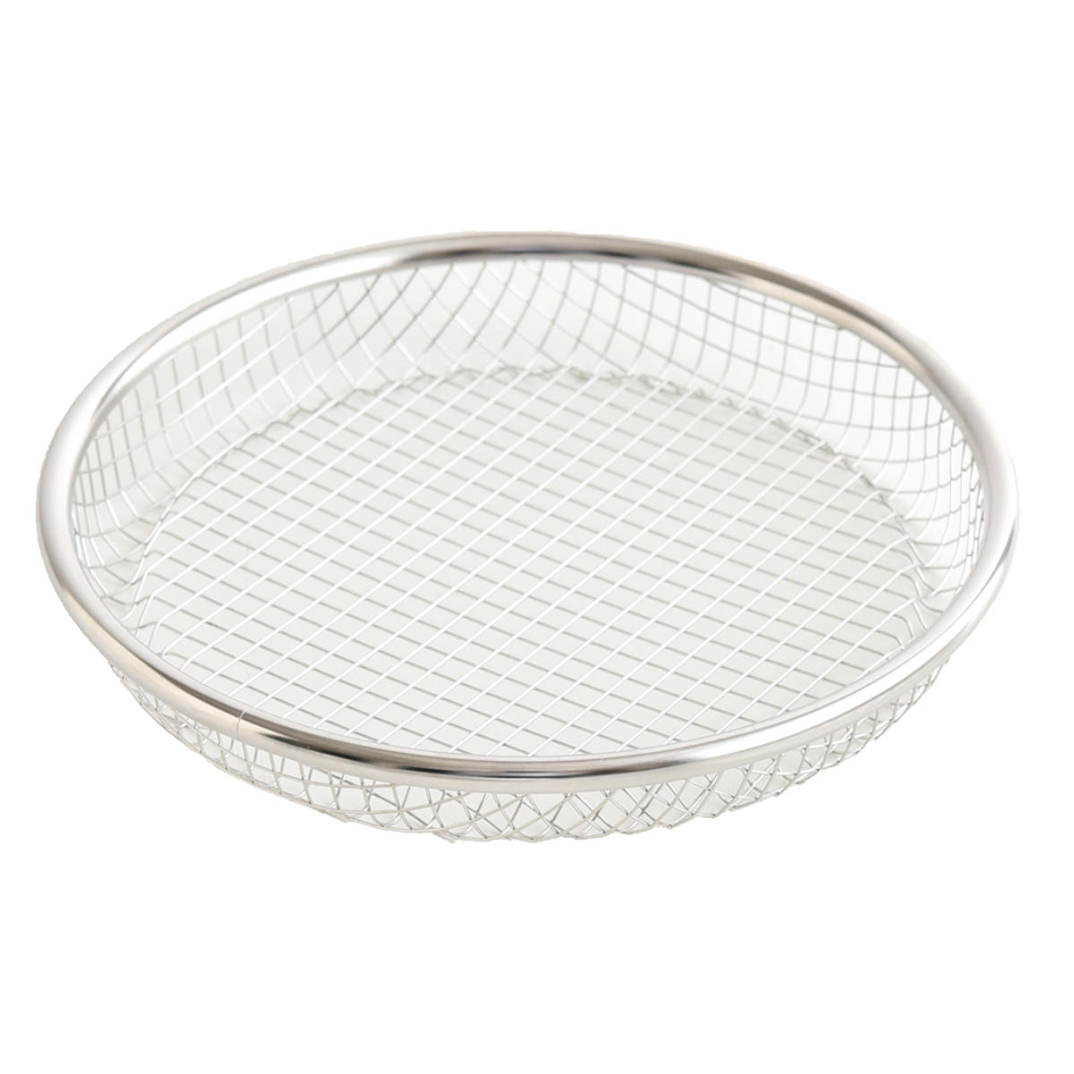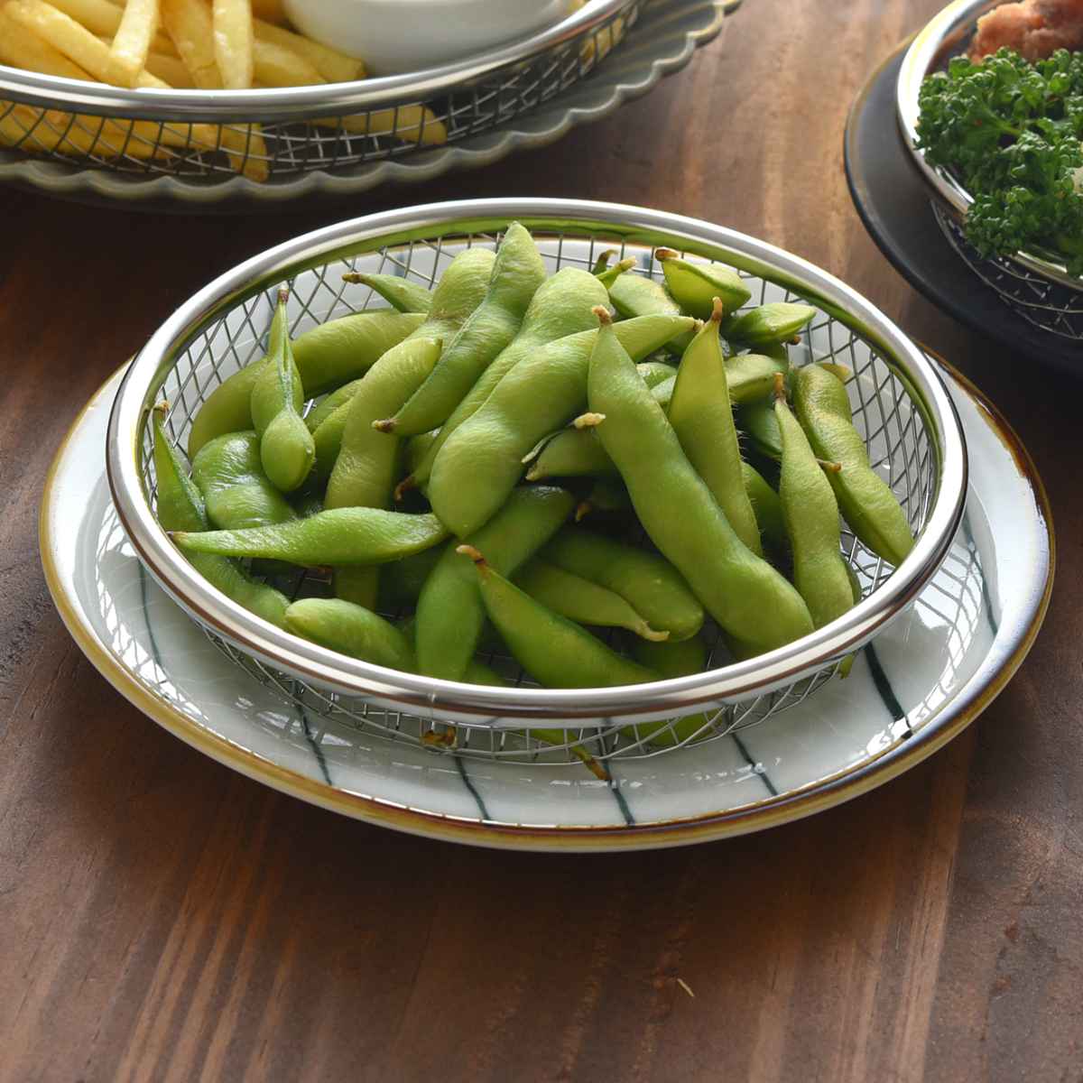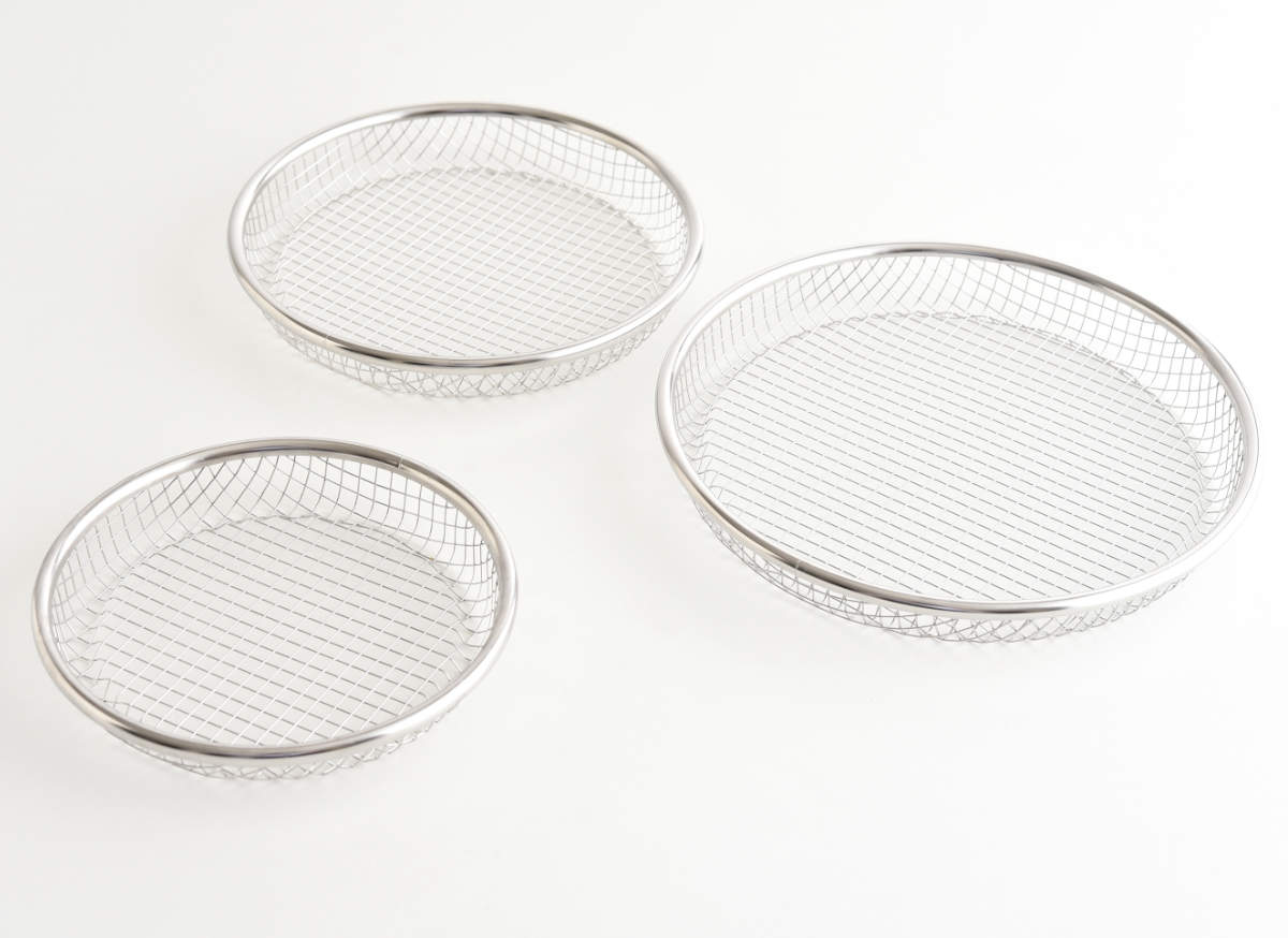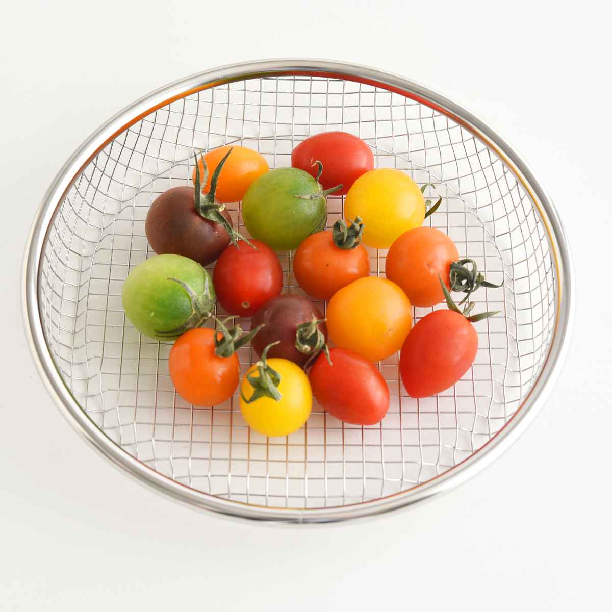 新潟県燕三条地域で生産された、ステンレス製の「お皿のための」ザルです。そのまま食卓に出せるように高級感のある仕上げにこだわりました。ご自宅にあるお皿と組み合わせて使うことで、ザルとお皿の間に隙間ができ、熱や湿気が抜けて美味しさと食感をキープします。