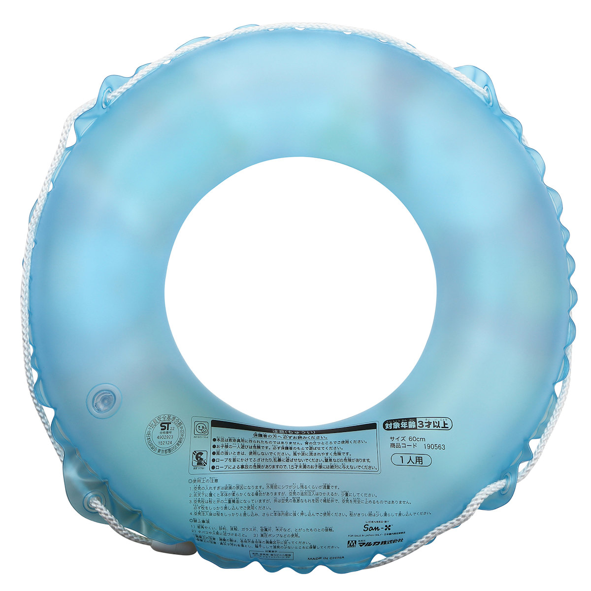 | 材質 | 本体、空気栓:塩化ビニル樹脂 ロープ、ジョイントパーツ:PP |