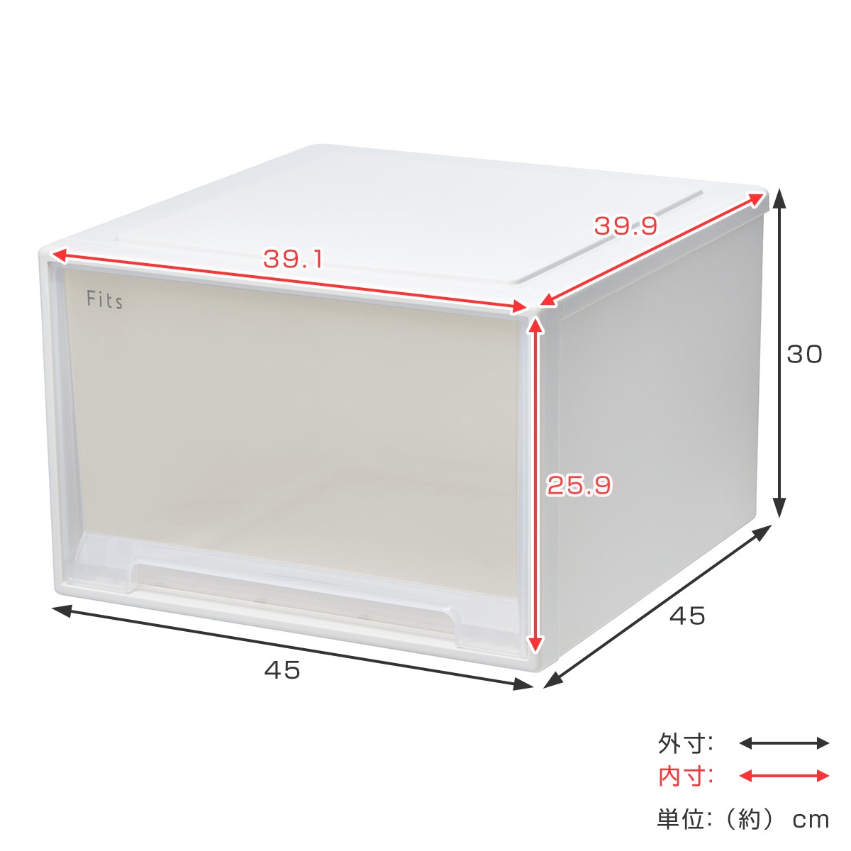 | サイズ | 約 幅45×奥行45×高さ30(cm) 引出内寸:約 幅39.1×奥行39.9×高さ25.9(cm) |
