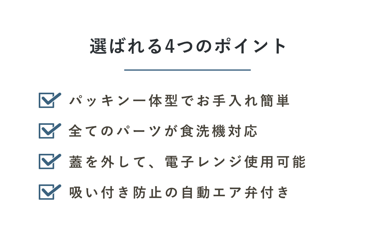 ●蓋とパッキンが一体化していて、洗いやすく汁漏れしにくいです。