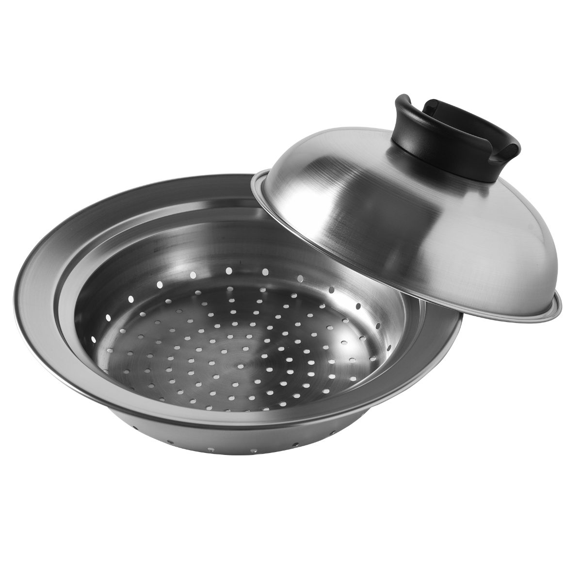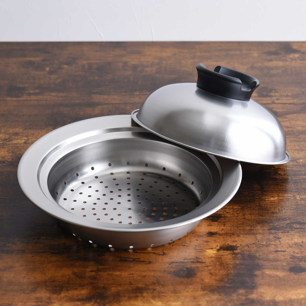 お手持ちのフライパンや鍋にのせるだけで、本格的な蒸し料理ができるステンレス製のスチーマーです。18~20cmのフライパンや鍋に対応しています。蒸し料理は、蒸気を利用して間接的に食材に火を通すので、水溶性の栄養素や旨みの流出を抑え、素材本来の旨みを堪能できるのが魅力です。ひとつ持っていると、料理の幅が広がり、手軽に蒸し料理が楽しめます。