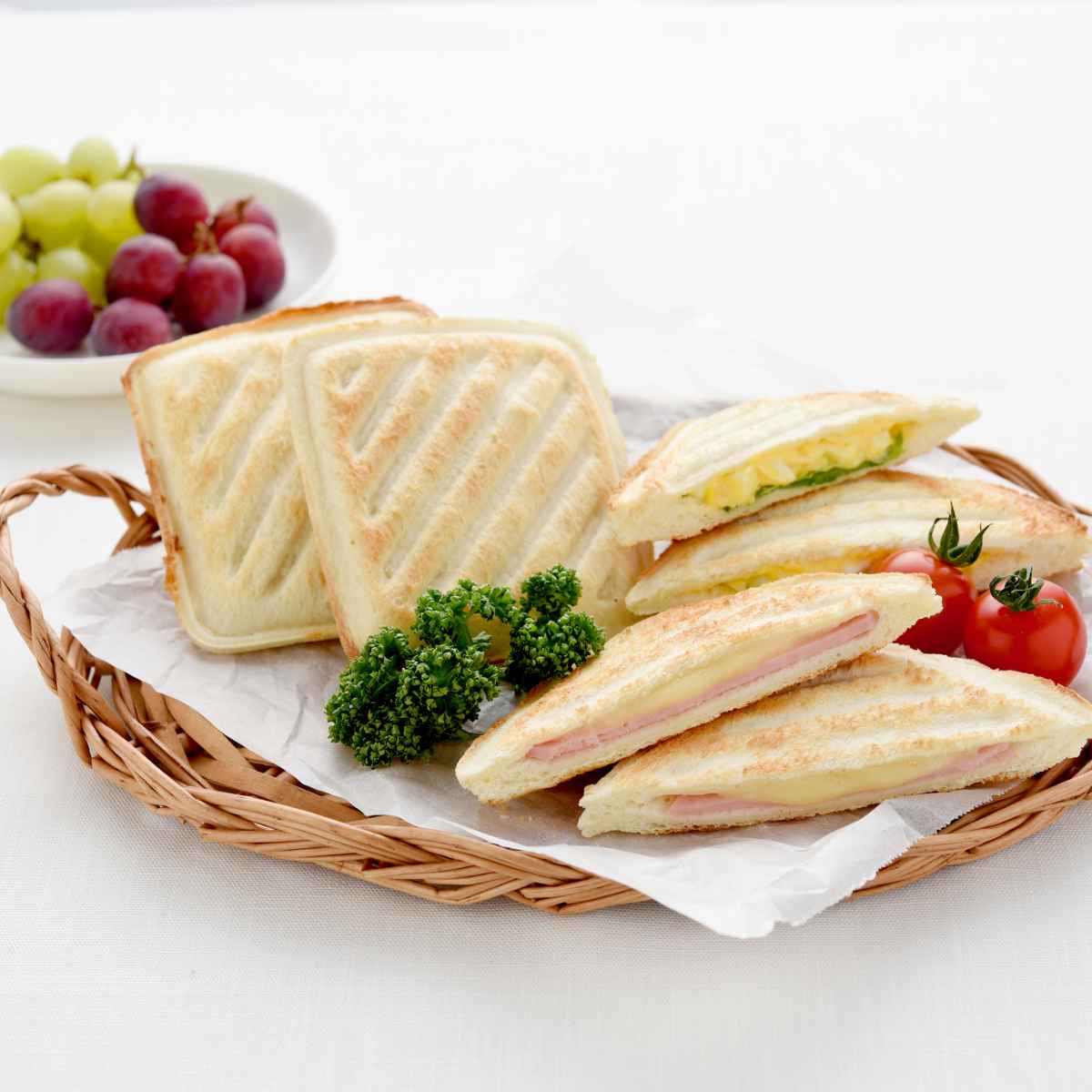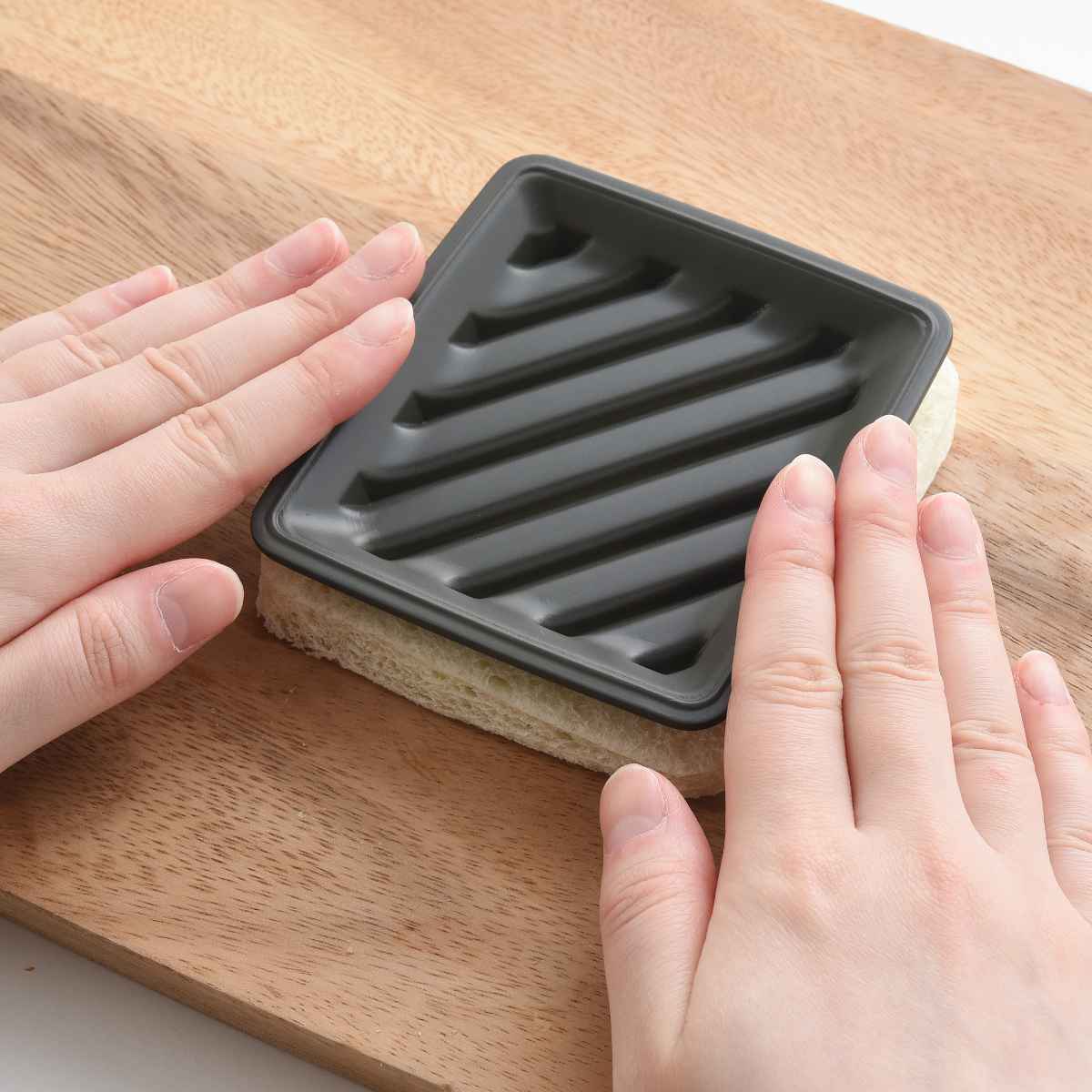 食パンにお好みの具材をはさみ、ふちを閉じたパックパンが作れる型です。蓋の波型でパンを押すとパニーニ風のサンドパンができます。具材がこぼれにくく、食べやすいのでお弁当や朝食にピッタリです。
