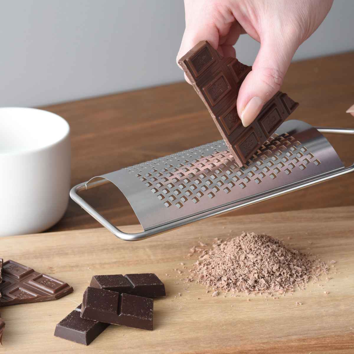 削りたての味と香りが楽しめるグレーターです。軽い力で食材を往復するだけで簡単におろせます。バターやハードチーズからレモンなどの柑橘類の皮、繊維のある生姜、にんにく、チョコレートなど色々な料理やトッピングに使えます。