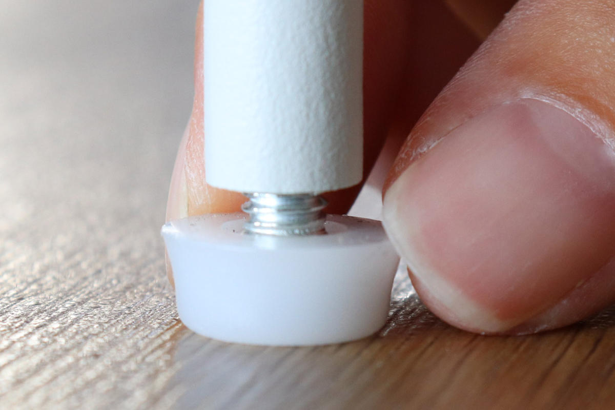 脚部はスチール製でサビにくいエポキシ樹脂粉体塗装を施した仕様になっています。先端はアジャスター付きで、床の凹凸や傾きによるガタつきを軽減します。