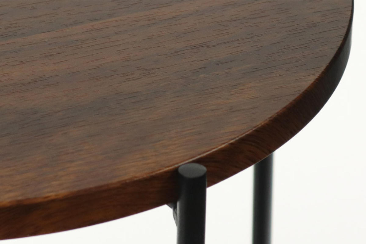 ダークブラウンの天板に、ブラックスチールの異素材の組み合わせが、雰囲気あるインテリアの一つとしてヴィンテージテイストのお部屋やインダストリアルインテリアに溶け込みます。落ち着いた印象で大人っぽいデザインになっています。