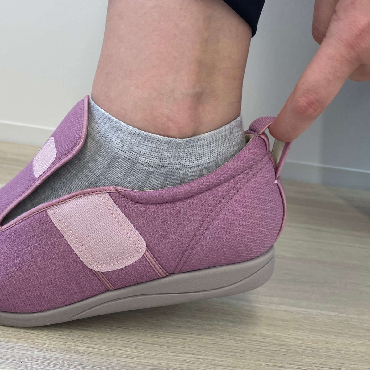 かかとの上部にループが付いているので、指に力が入りにくい人やシューズのかかとに指を入れて履くという細かい動作がしにくい人でも楽に履いていただけます。