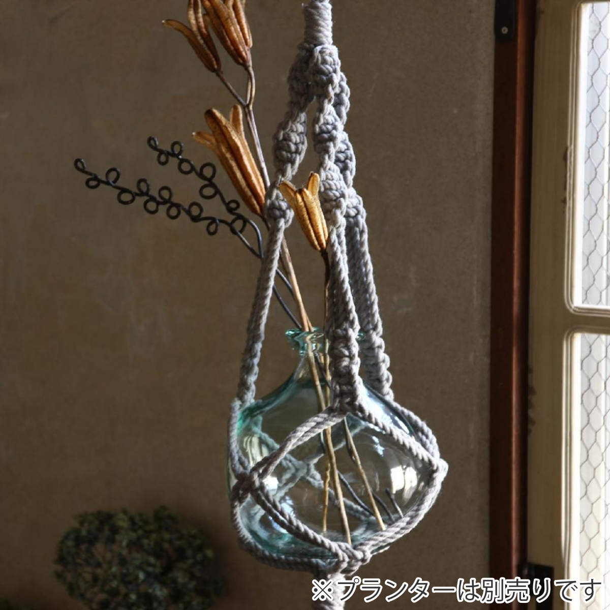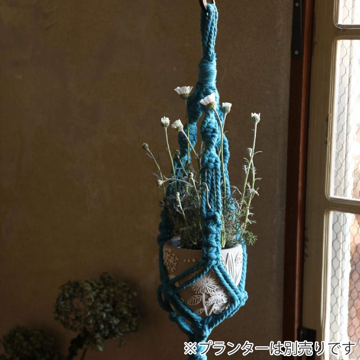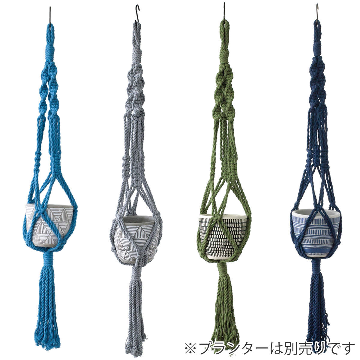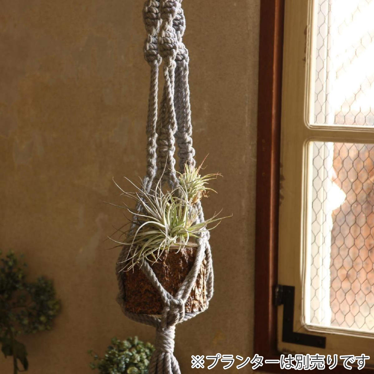 マクラメという結い技法を用いて作られたプラントハンギングです。植物を植えたプランターやガラスベース、カゴ等を入れて吊るしてグリーンのある生活を楽しめます。