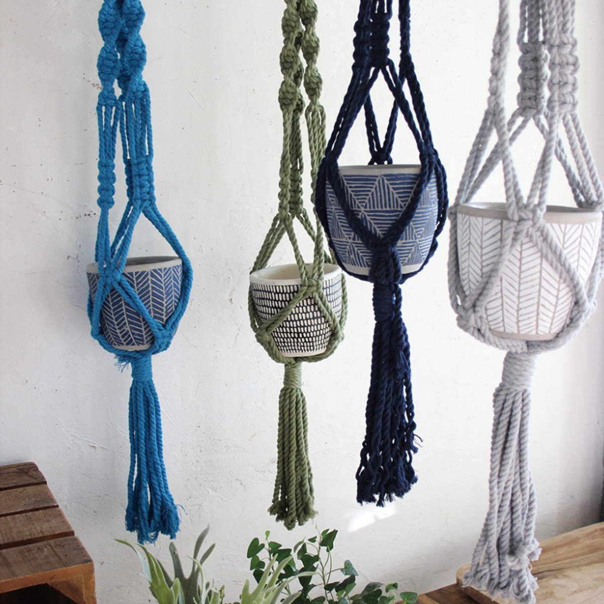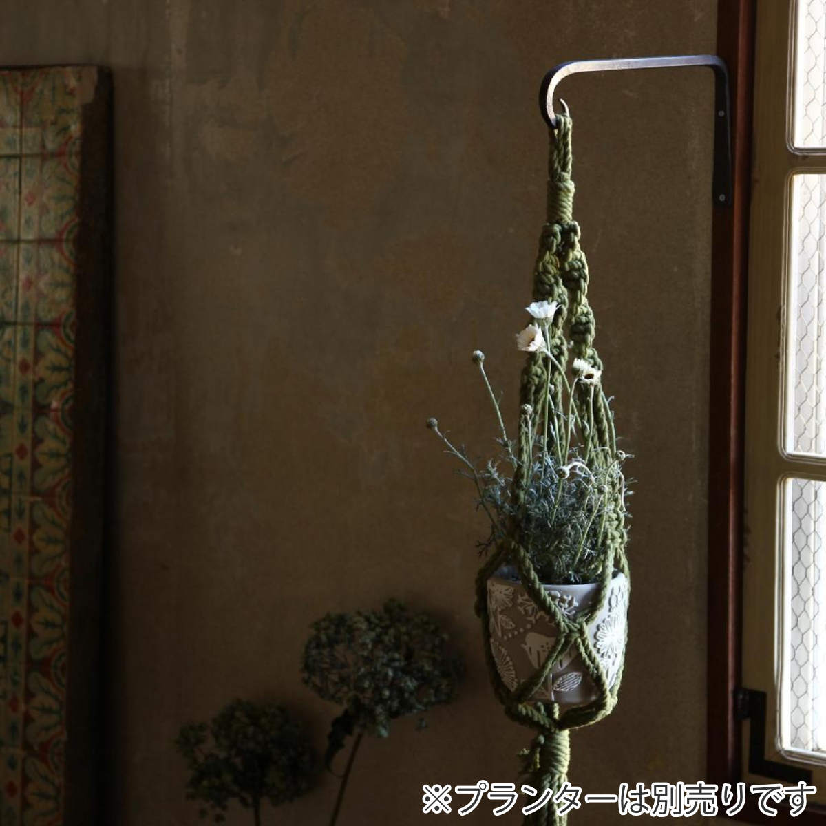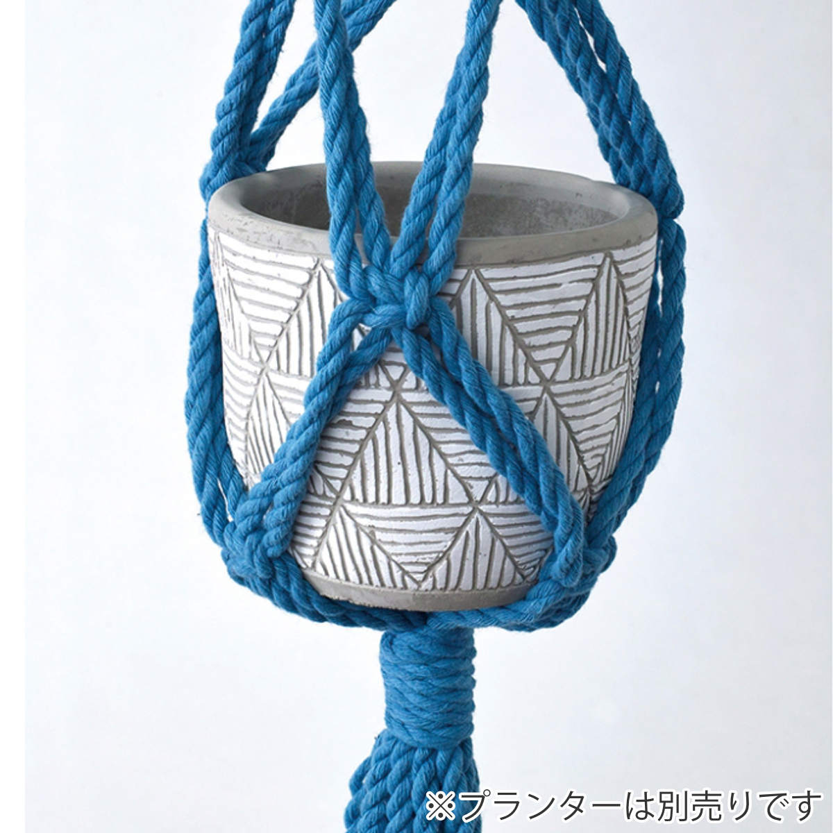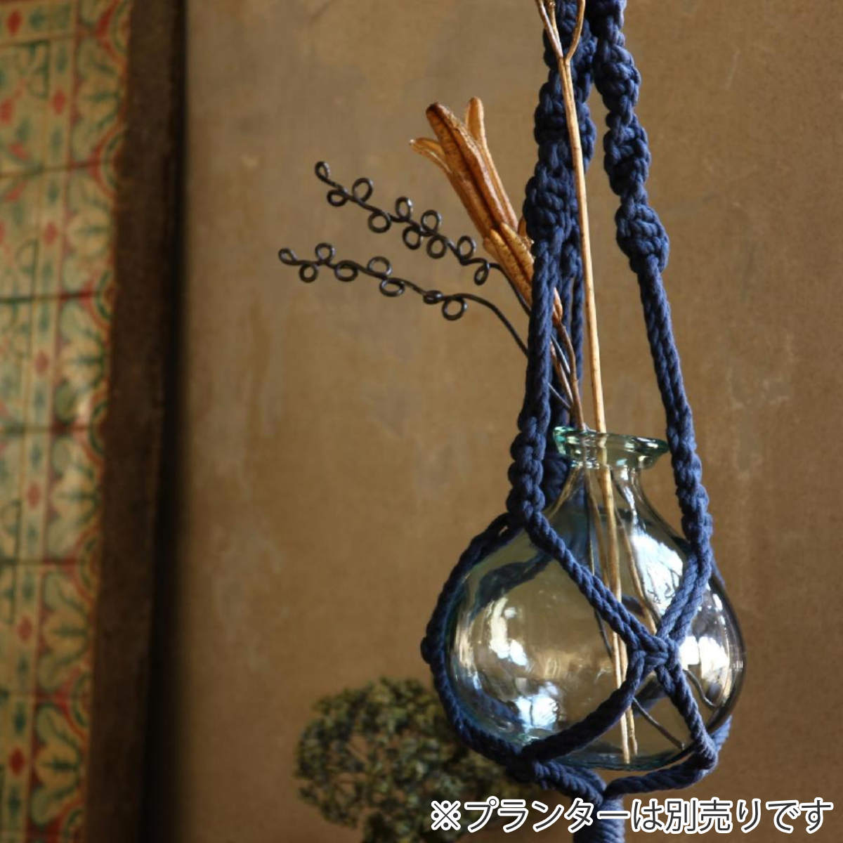 マクラメという結い技法を用いて作られたプラントハンギングです。植物を植えたプランターやガラスベース、カゴ等を入れて吊るしてグリーンのある生活を楽しめます。