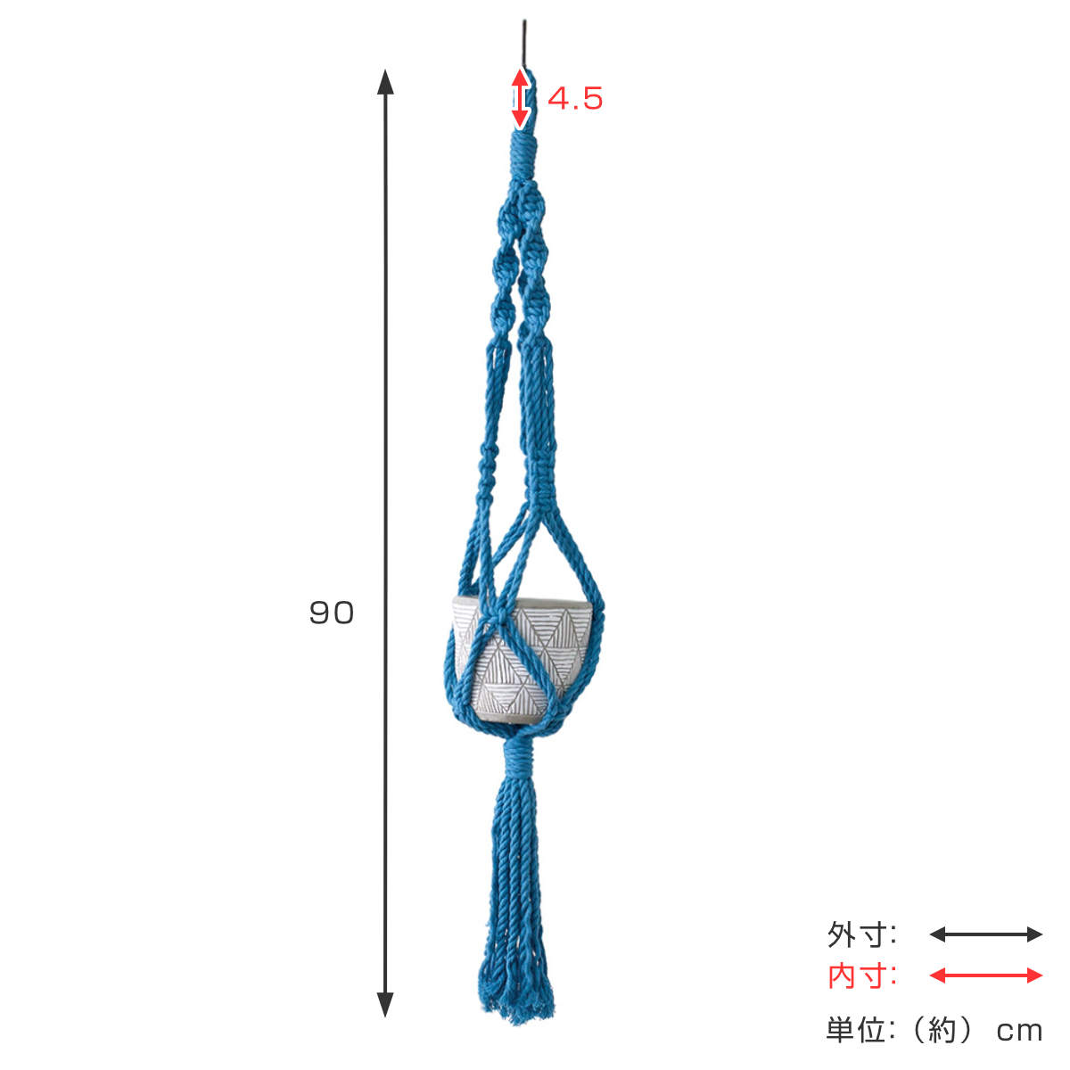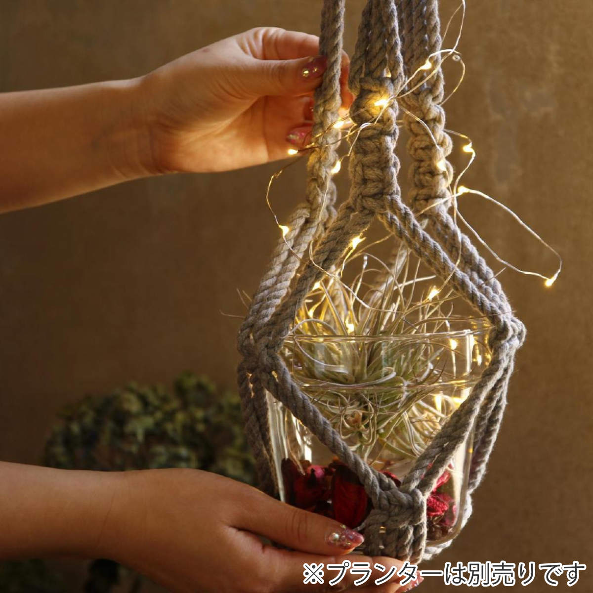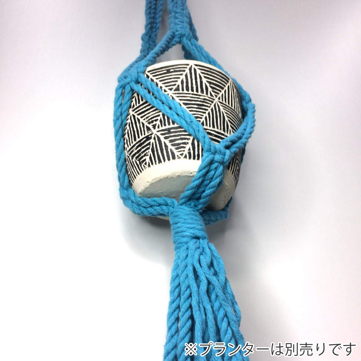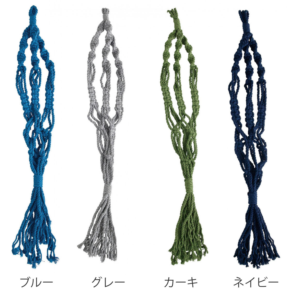 マクラメという結い技法を用いて作られたプラントハンギングです。植物を植えたプランターやガラスベース、カゴ等を入れて吊るしてグリーンのある生活を楽しめます。
