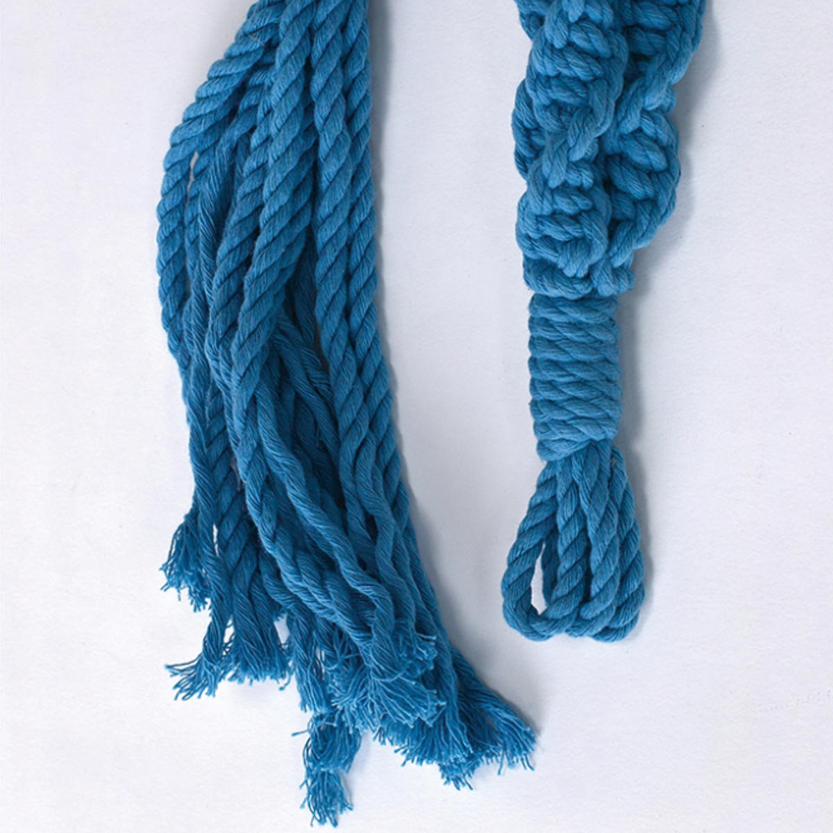ひとつひとつ手編みで作るため、紐の長さや編み具合の表情が微妙に違うのもマクラメの特徴です。インテリアのポイントになるカラーリングが魅力です。