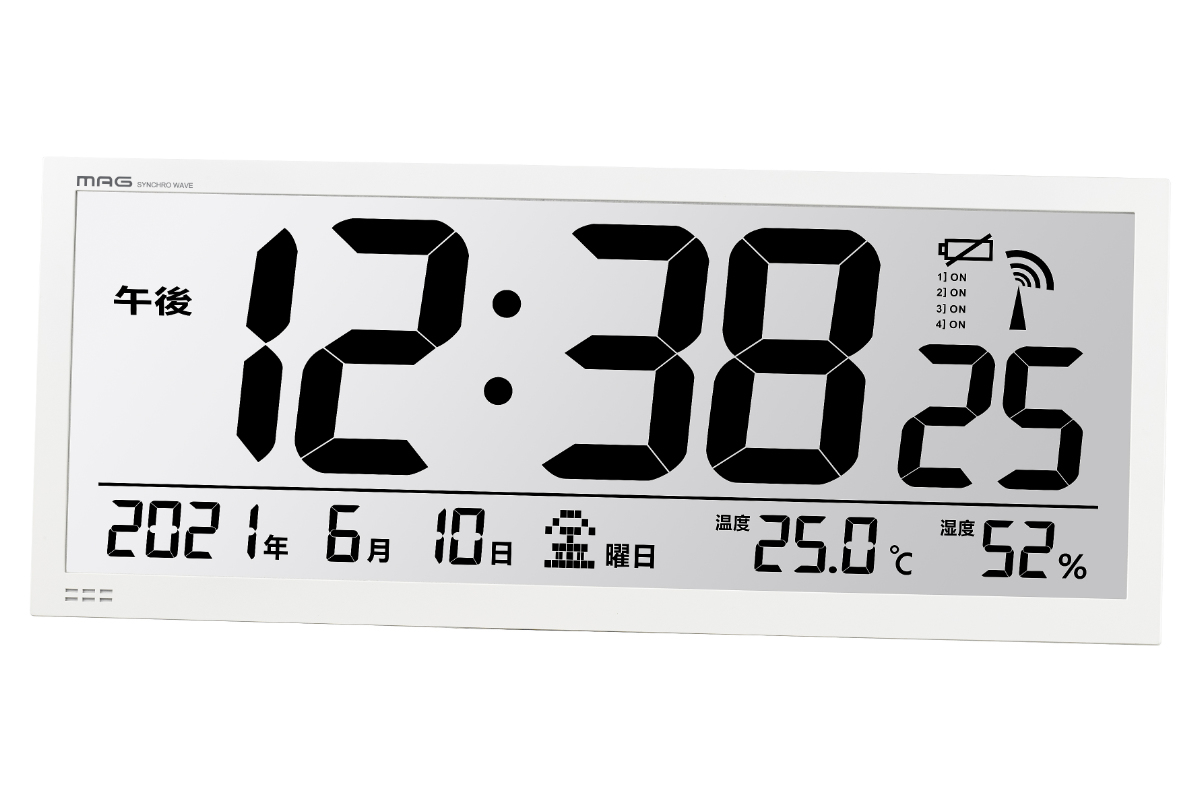 ●オフィスや店舗、広い会議室などでも見やすい、横幅55cmの大型デジタル壁掛け時計です。