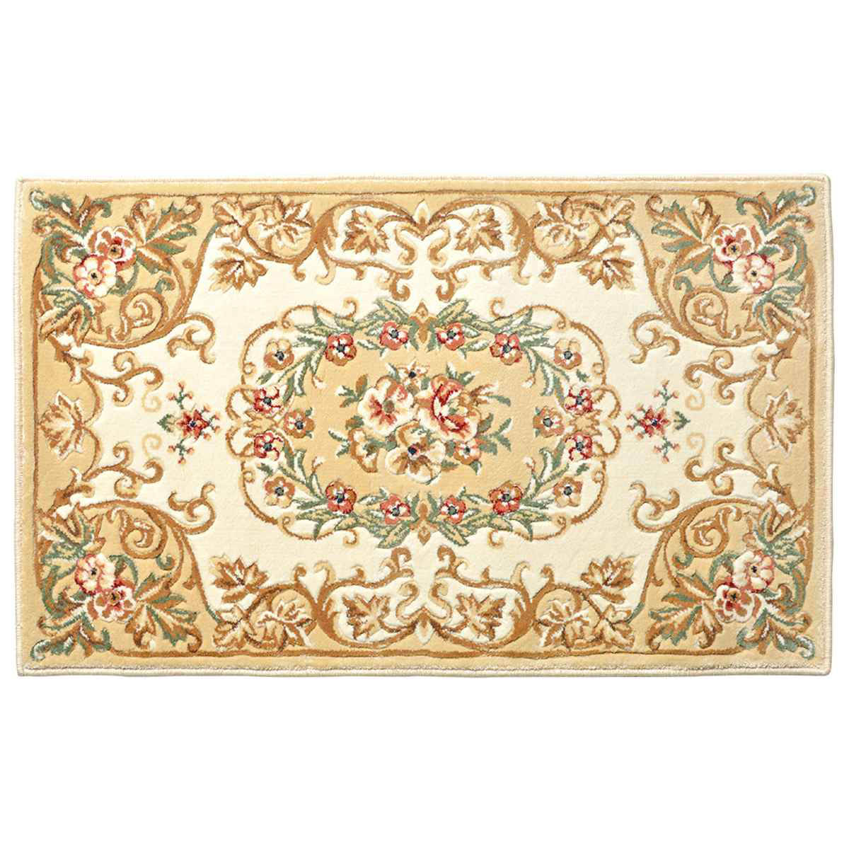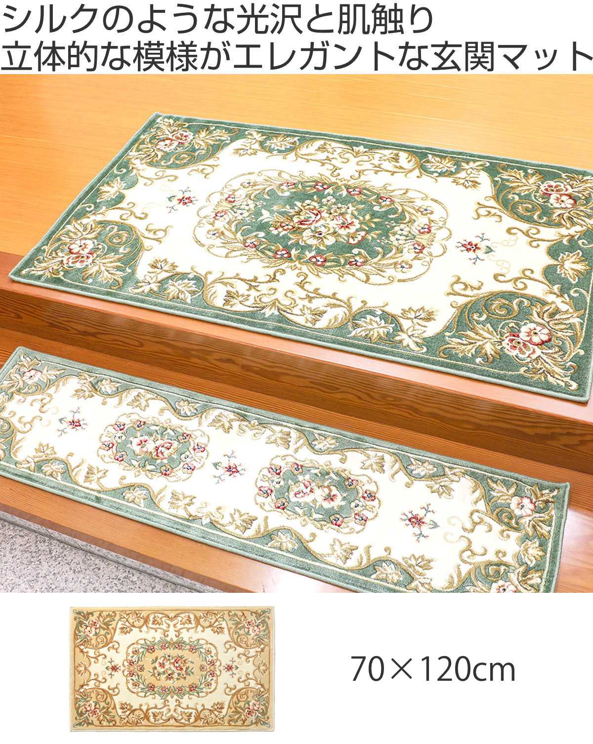 玄関マット 室内用 70×120cm メダリオン ( マット 玄関 室内 部屋 ラグ インテリア 花柄 エレガント 屋内 おしゃれ 高級感 70cm 120cm 玄関用品 アクセントマット 玄関用マット 重厚感 厚み 1cm カービング加工 ) 【ベージュ】