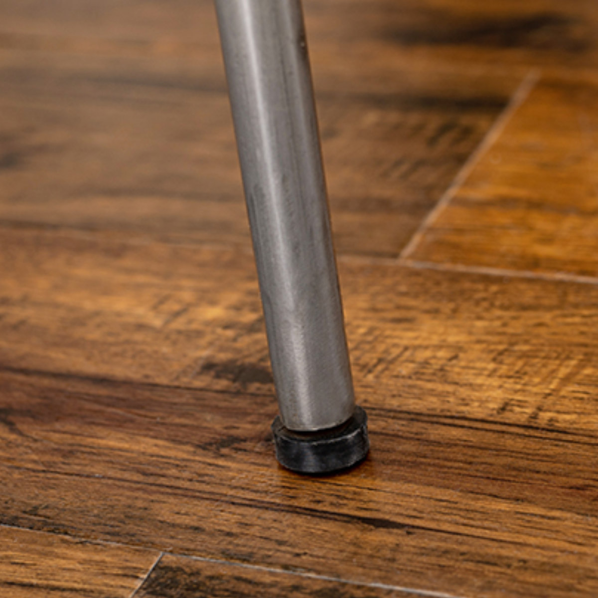 ダイニングチェアの無骨なスチール脚の先には、樹脂素材を使用しています。床への傷付きを防いでくれるので、安心してお使いいただけます。