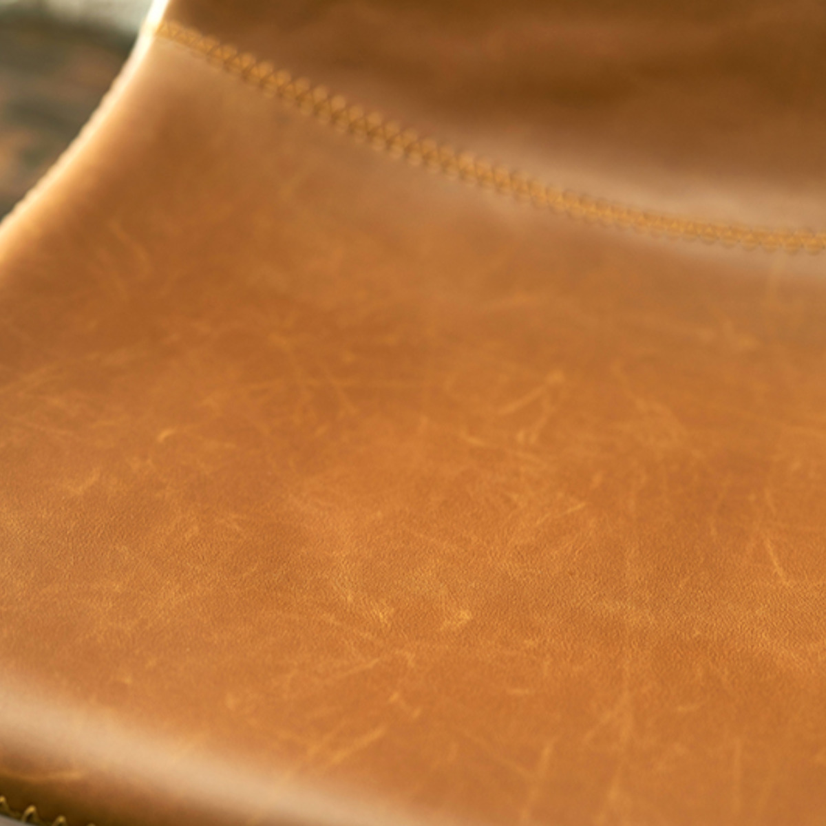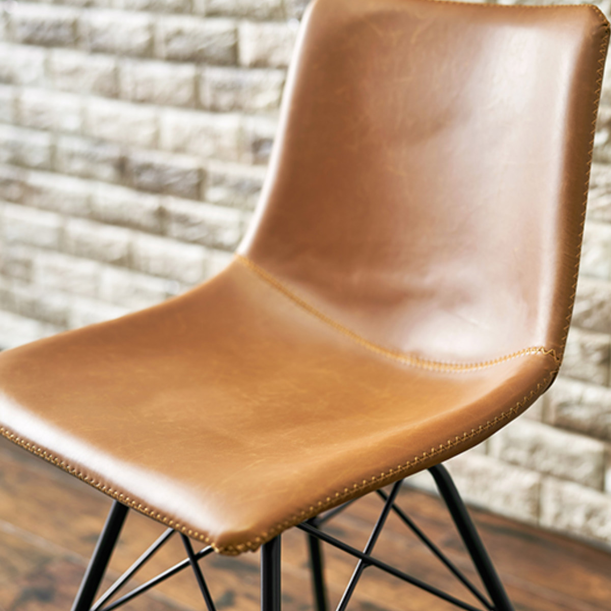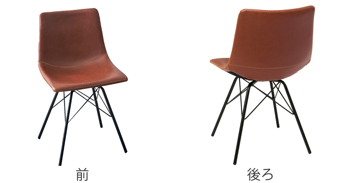 本革をリアルに再現したヴィンテージ調の合成皮革を張り生地に使用したダイニングチェアは、立体的な形状で身体に優しくフィットし、包み込まれるような座り心地を実現しています。