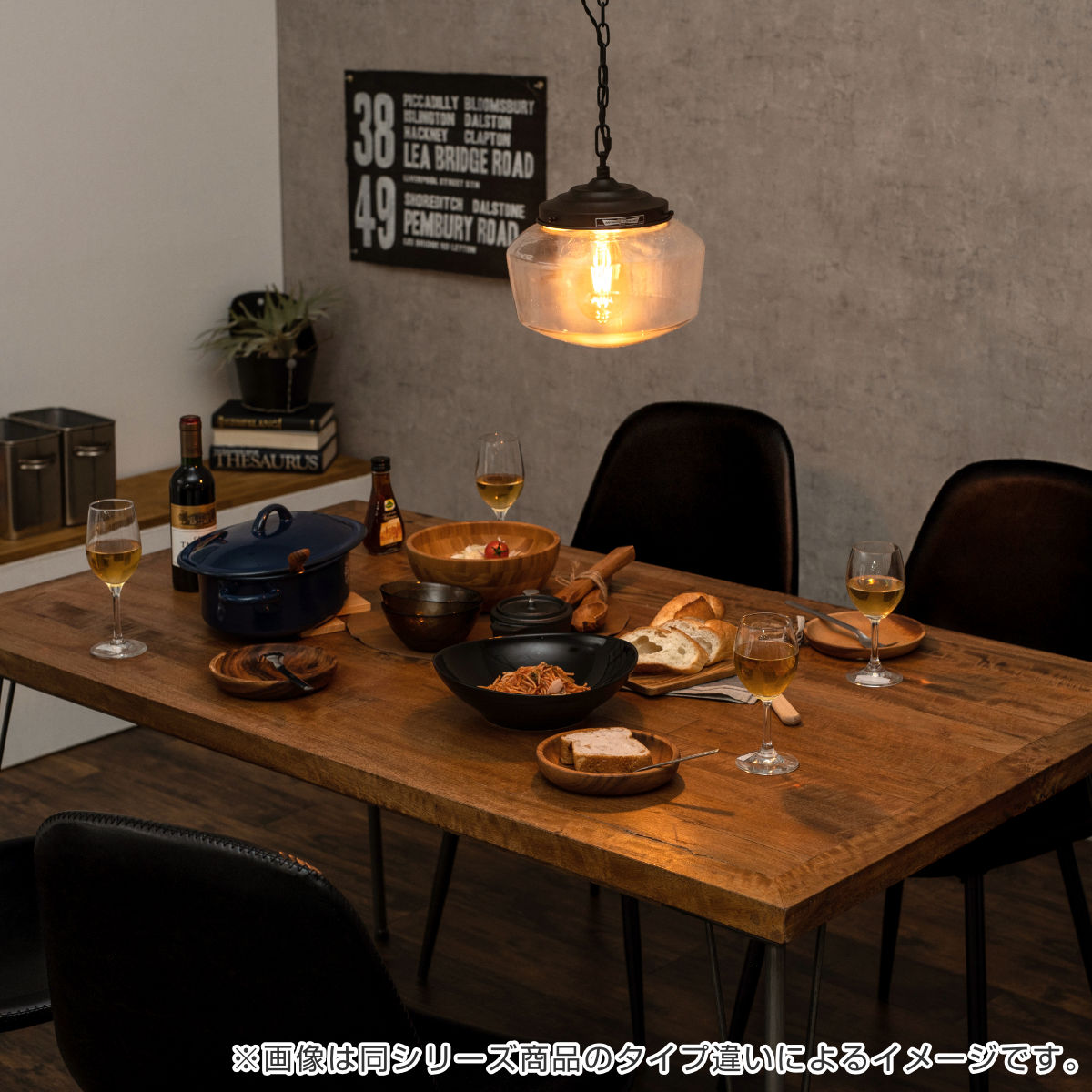 天然木特有の質感を生かした風合いに仕上がっている天板は、照明によってその表情を変えます。夜は日中とはまた違ったムードで、落ち着いた時間をお楽しみいただけます。一つのテーブルで色んな表情を見られる、味わい深いテーブルです。