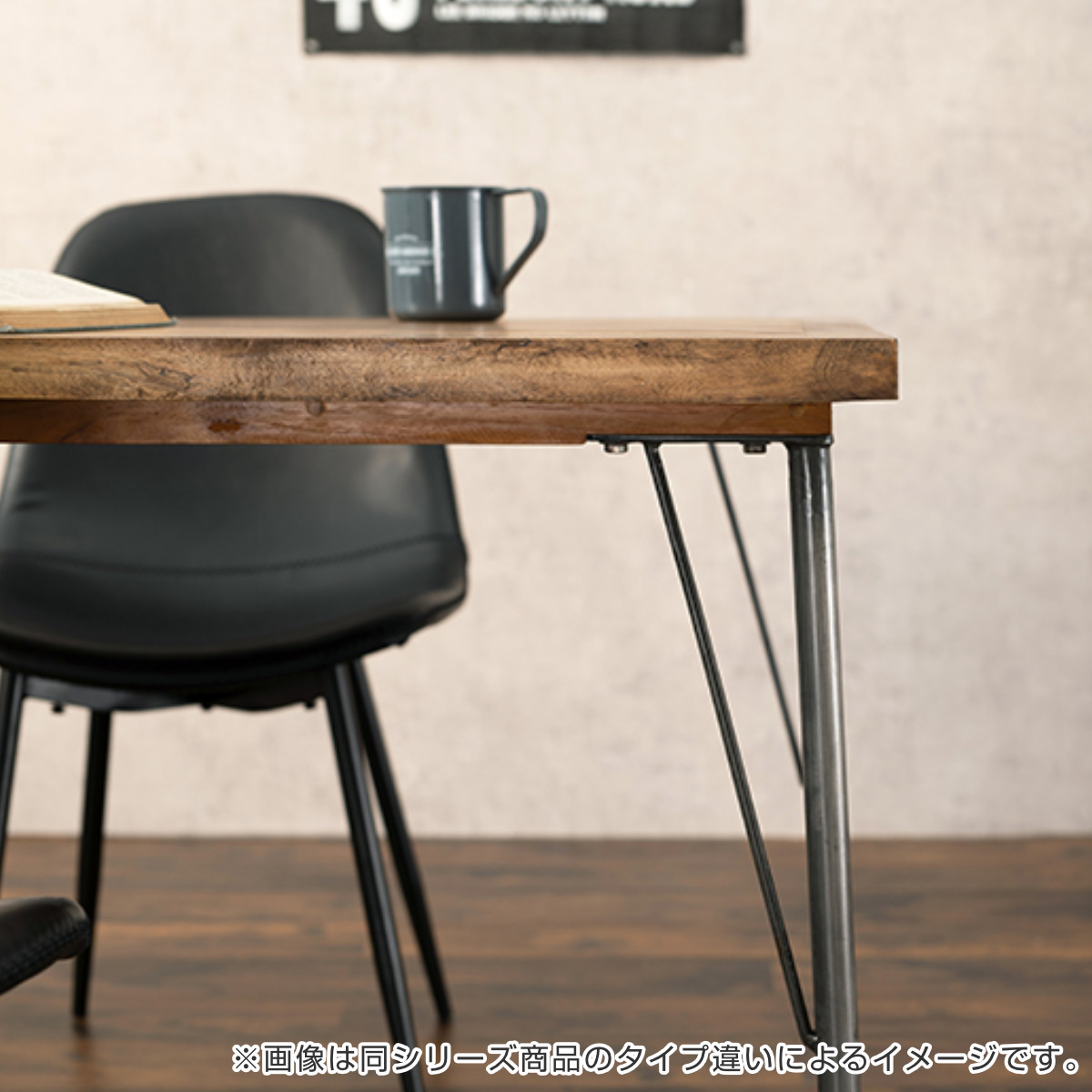 | 材質 | 【テーブル】 天板:天然木(マンゴーウッド)、ラッカー塗装 脚部:スチール(紛体塗装) 【チェア】 フレーム:積層材 クッション材:ウレタンフォーム 張り地:合成皮革 脚部:スチール(紛体塗装) |