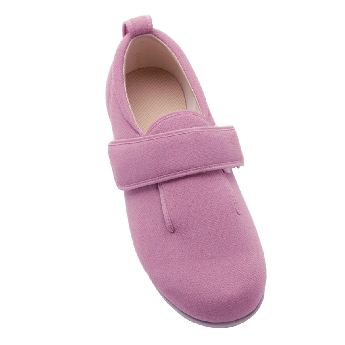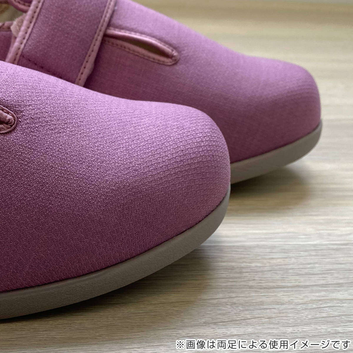 内素材がやわらかくベルトが甲全体に優しくフィットするので、むくみや腫れがあるときも、足の状態に合わせてベルトで調整できます。外反母趾の方や足ゆびに変形・痛みがある方、甲高の方にもおすすめです。ベルトは面ファスナーの調整によって+2cmまで延長できます。