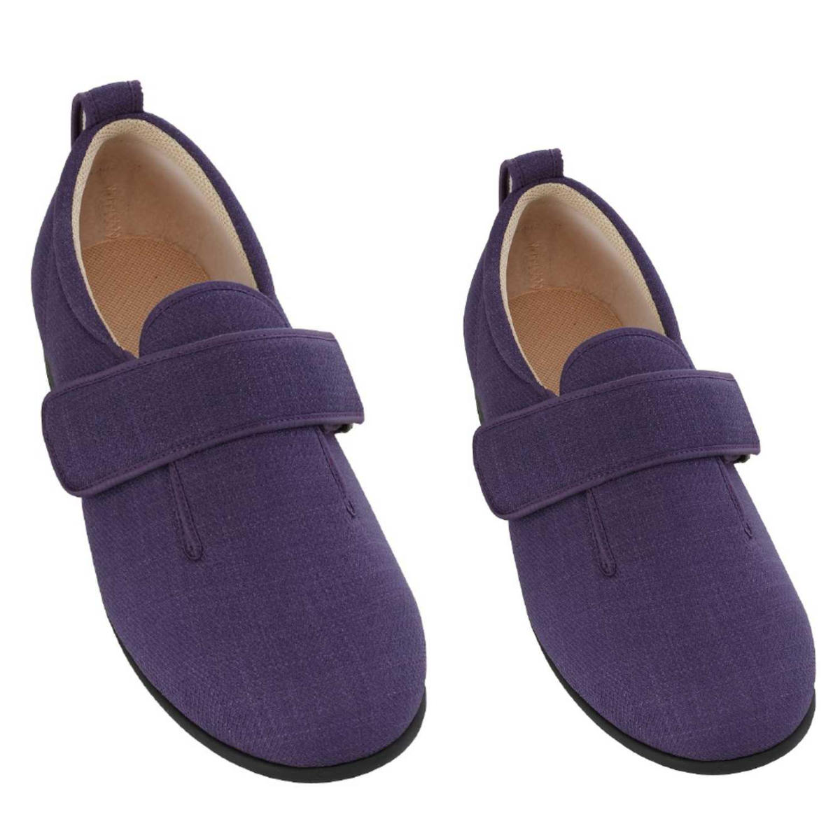 内素材がやわらかくベルトが甲全体に優しくフィットするので、むくみや腫れがあるときも、足の状態に合わせてベルトで調整できます。外反母趾の方や足ゆびに変形・痛みがある方、甲高の方にもおすすめです。ベルトは面ファスナーの調整によって+2cmまで延長できます。