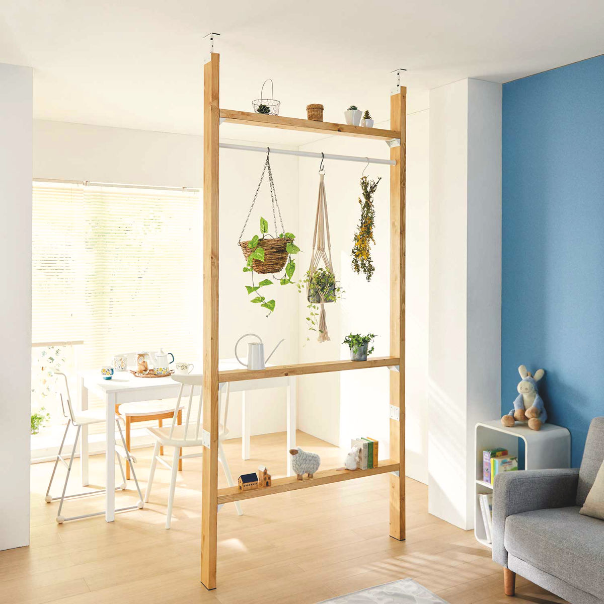 「LABRICO(ラブリコ)シリーズ」は特別な技術がなくても、安全で簡単に楽しめるDIY収納パーツです。ホームセンターで必要な木材を買ってパーツを組み合わせれば、柱や棚が作れます。安心・安全に配慮した商品設計で、壁や床を大きく傷付けず、住まいに合わせた自由なサイズで設置が可能です。DIYを経験したことがない方から経験豊富な方まで、多くの方が利用できます。