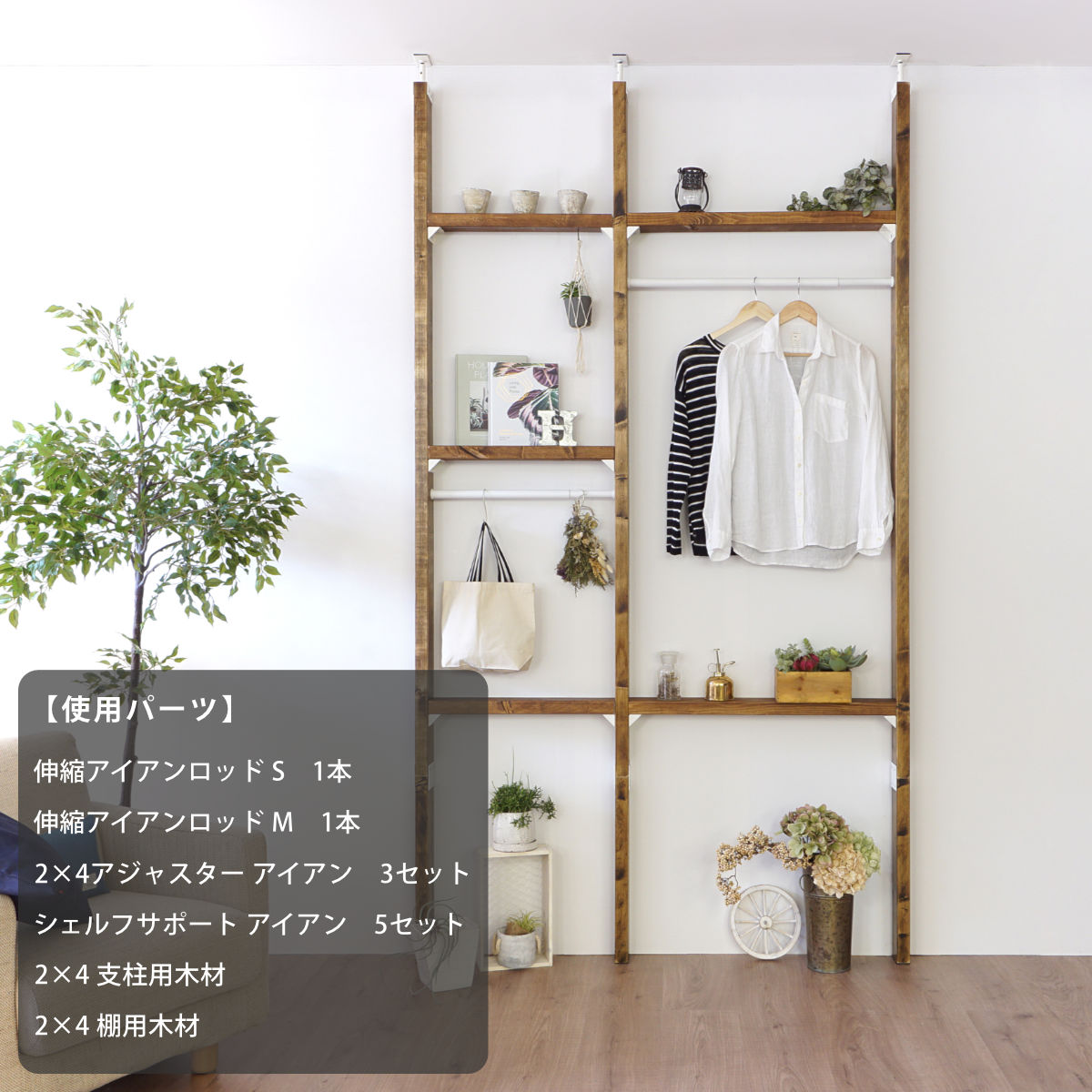 | 内容量 | 2セット 1セットに付き(伸縮アイアンロッド本体1個、ソケット大1個、ソケット小1個、木ねじ4個) |