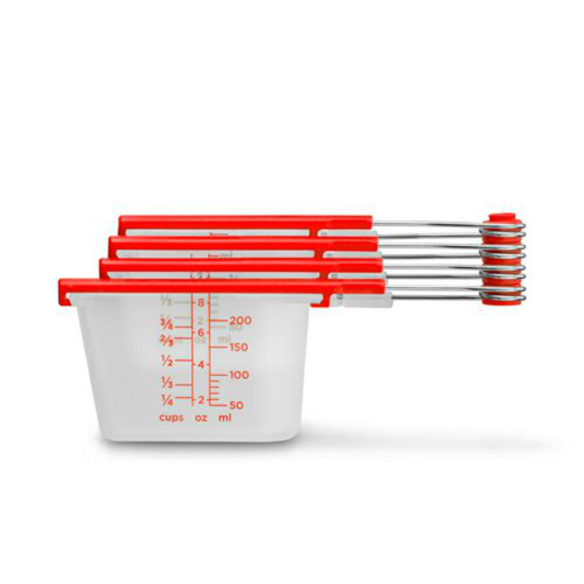 オーストラリア・ドリームファームの片手ですり切り可能な計量カップ4種セットです。1つ1つのカップに大きな文字で読みやすい分量表示が示されています。ml、oz、cupの3通りのメモリ表記で海外のレシピにも対応しています。さらに、重ねて収納することができるので省スペースでのコンパクト収納が可能です。必要なサイズのみ取り外して、個別に使うことができる便利なアイテムです。
