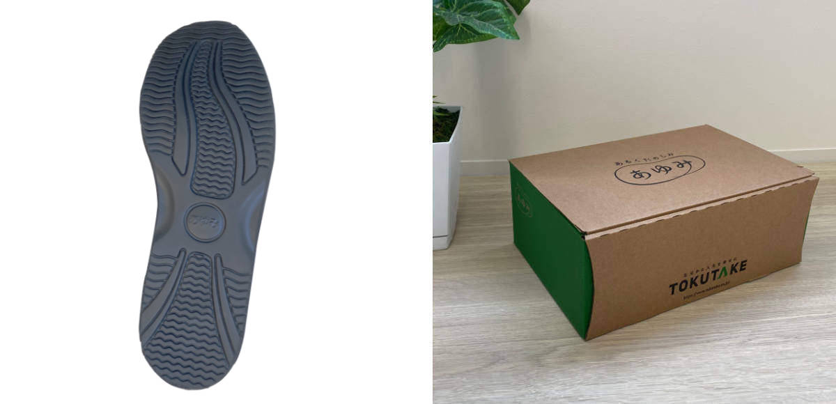BOX入りなのでプレゼントにもおすすめです。足にお悩みを持つ方、高齢者の方に喜んでいただけるシューズです。