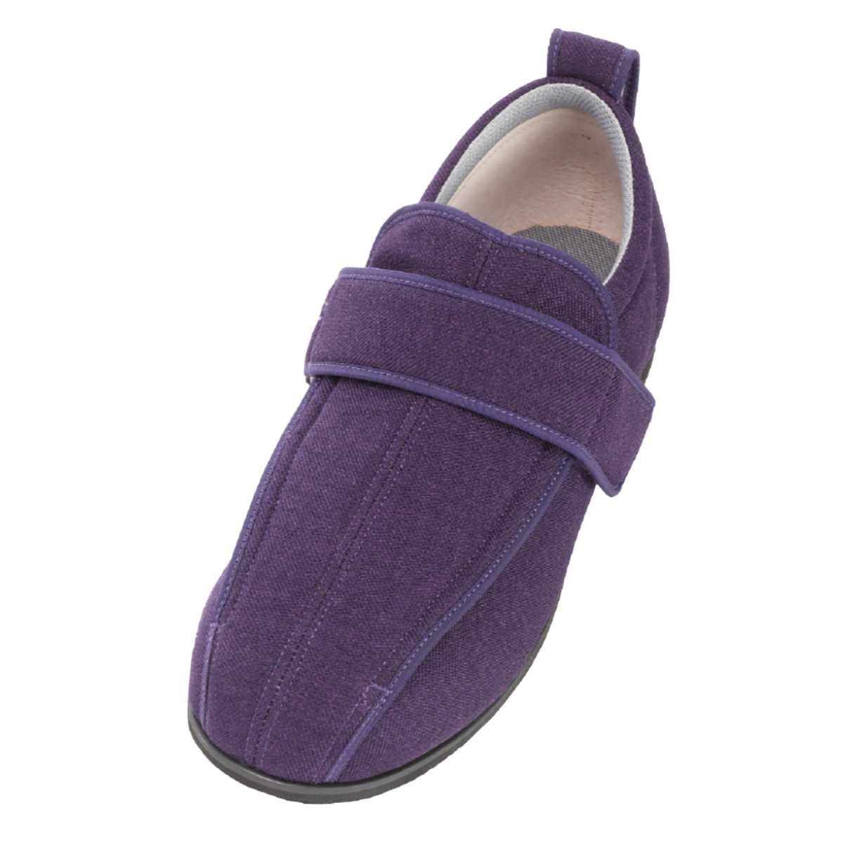 歩行中に転倒しないための工夫が詰まった、安心の履き心地の外出用シューズです。足先まで大きく開き、履き口も広めなので足入れもスムーズにできます。介助者にとっても履かせやすく、脱がせやすい仕様です。