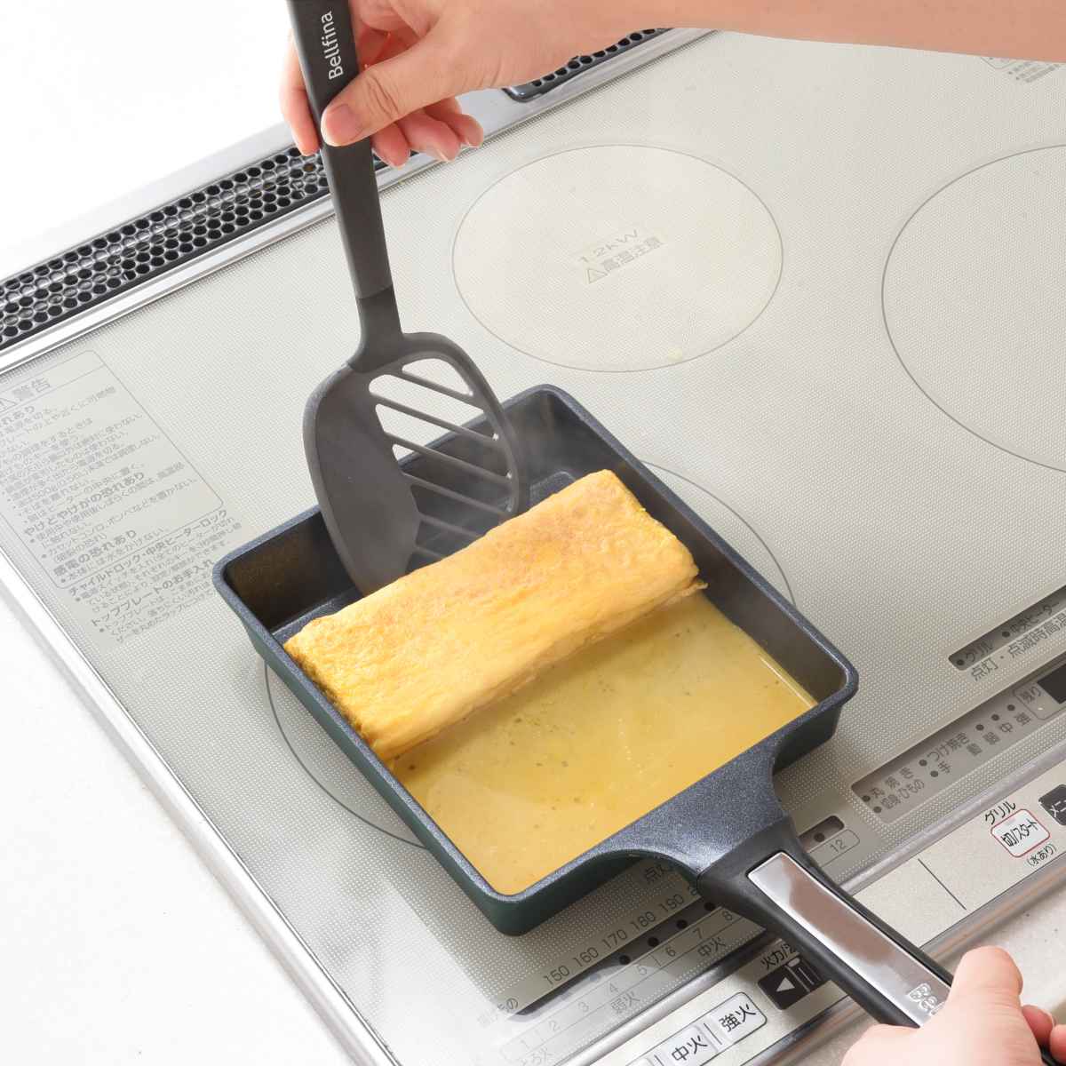 ●ベルフィーナ独自のコーティングで焦げ付きにくい15×18cmサイズの玉子焼き器です。