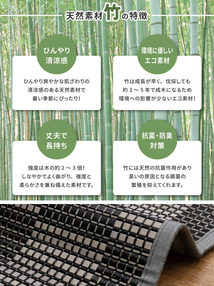 ふっくらウレタン入りでクッション性がうれしい天然竹ラグ