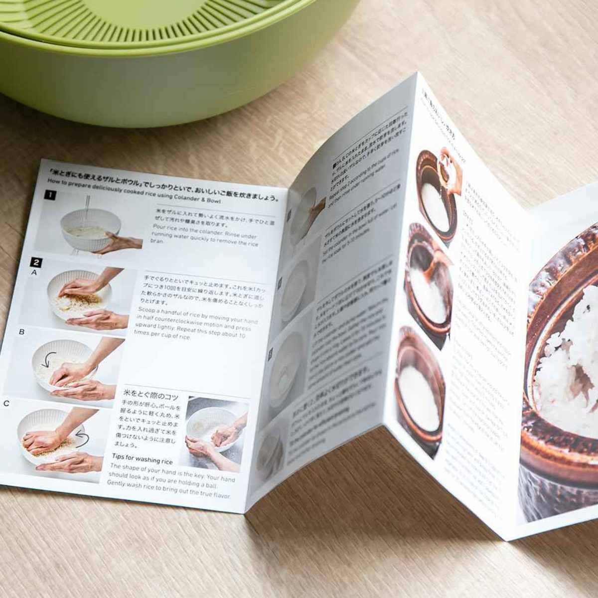 お米の研ぎ方や土鍋を使ったおいしいごはんの炊き方を紹介したリーフレット付きです。見ながら作れば、いつものご飯もぐっとおいしく炊けます。