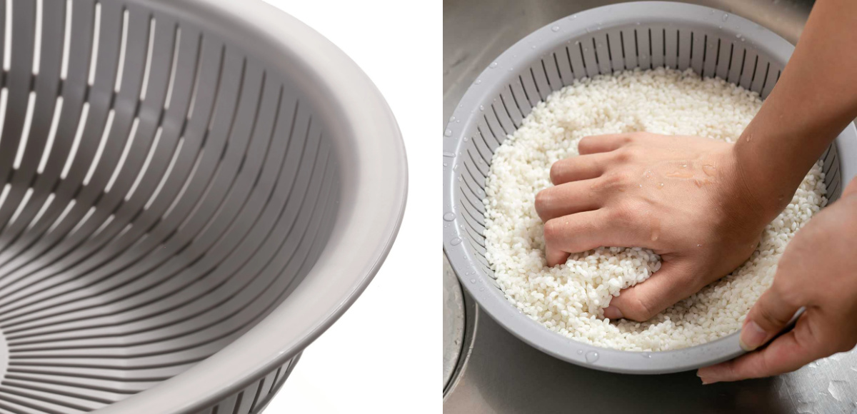 お米の研ぎ方に着目して生まれたザルとボウルのセット