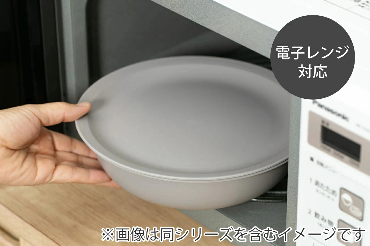 同シリーズのプレートでボウルにフタをして、余った食材や下ごしらえしたものを冷蔵庫で保存できます。フタをした上に別のものを置けるので、デッドスペースができず効率的です。
