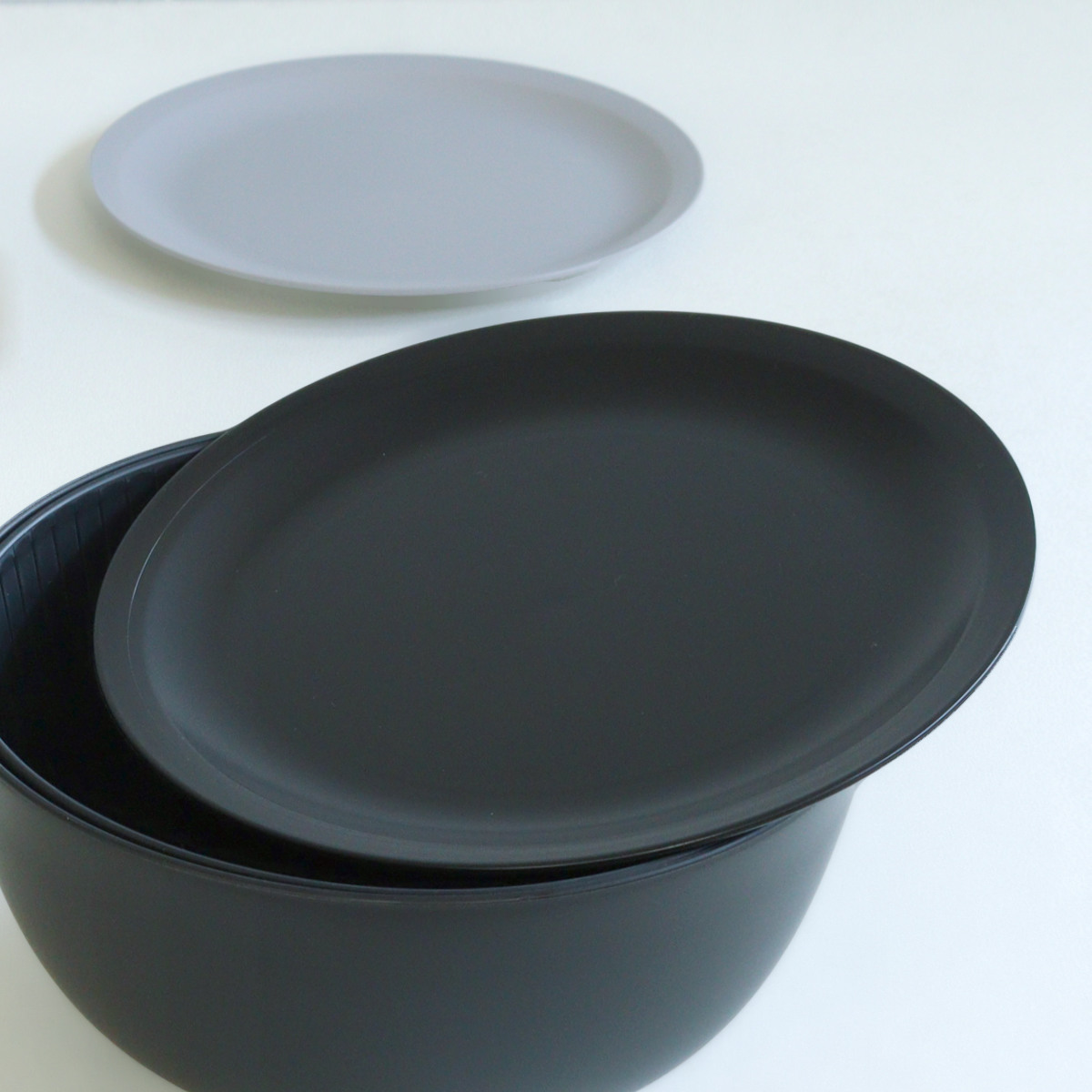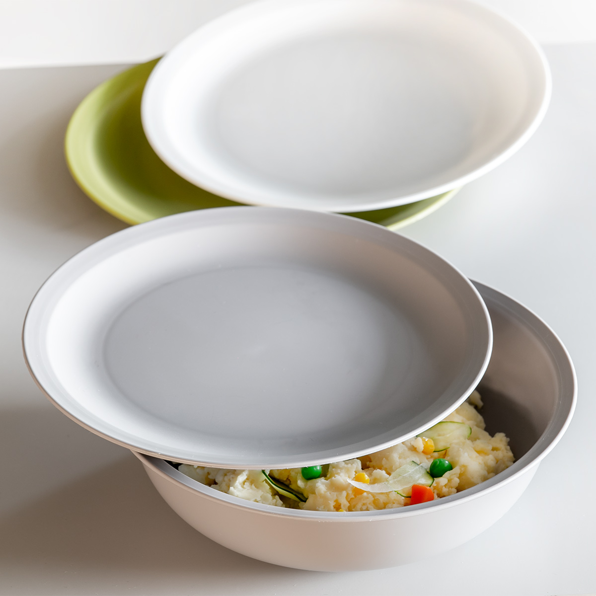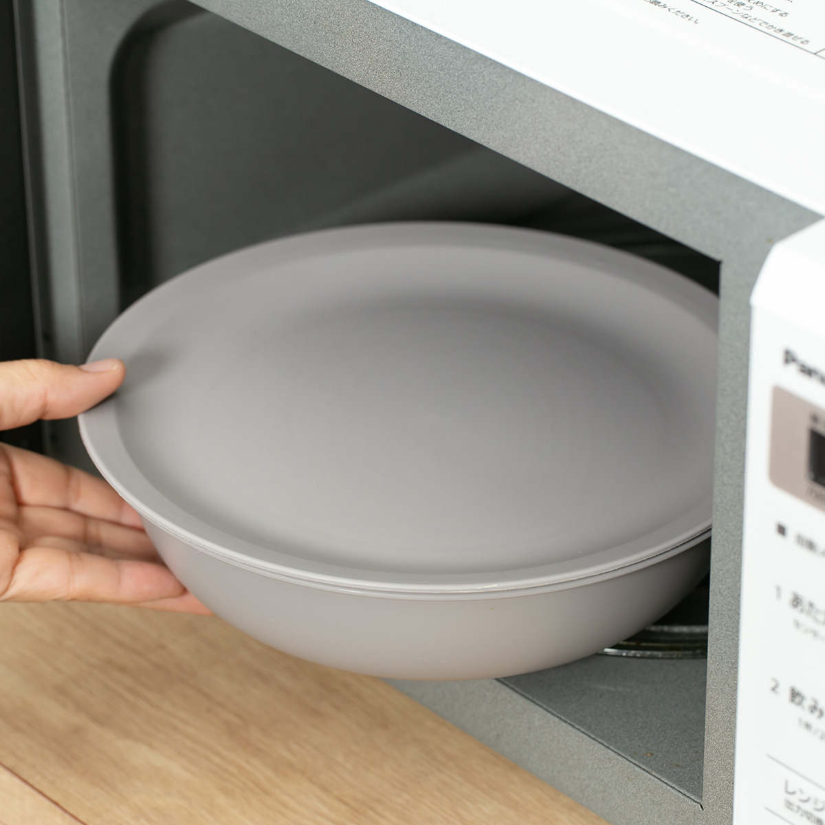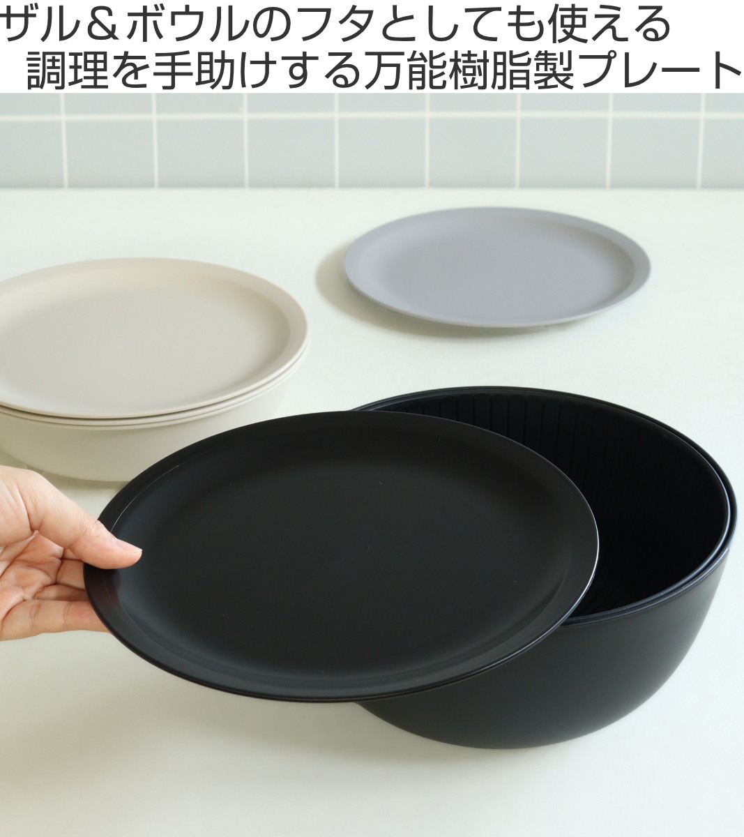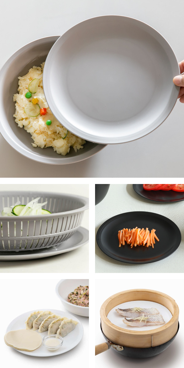 薄くて軽くて割れにくいのが特徴の、樹脂製プレートです。バットよりもかさばらず、お皿よりも扱いやすいのが魅力です。食材の一時置きにはもちろん、水切り時の水受けとしてや、蒸し器のお皿として、またボウルに乗せればフタとしても活躍し、様々な調理の下ごしらえを手助けします。