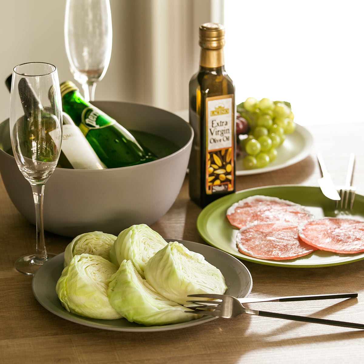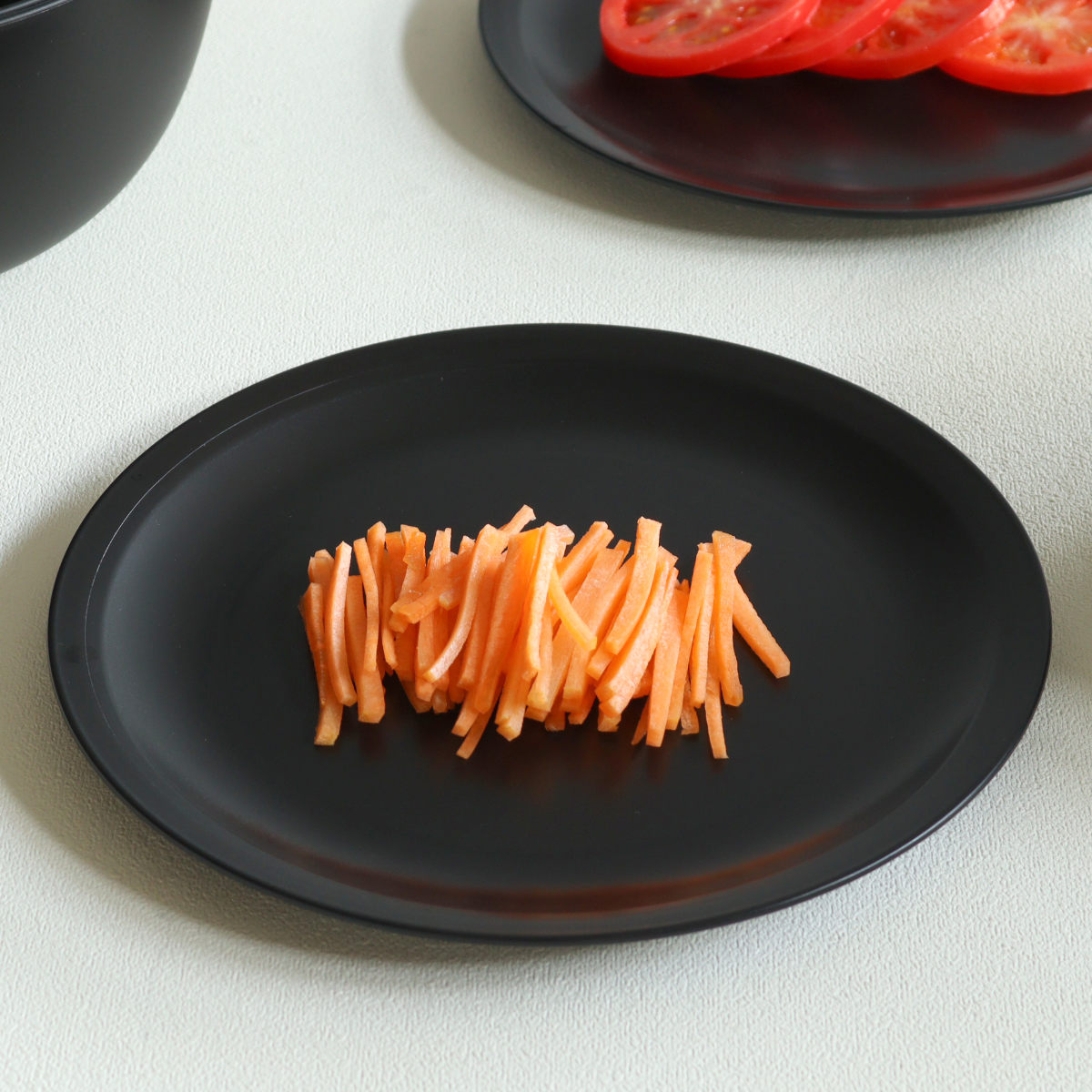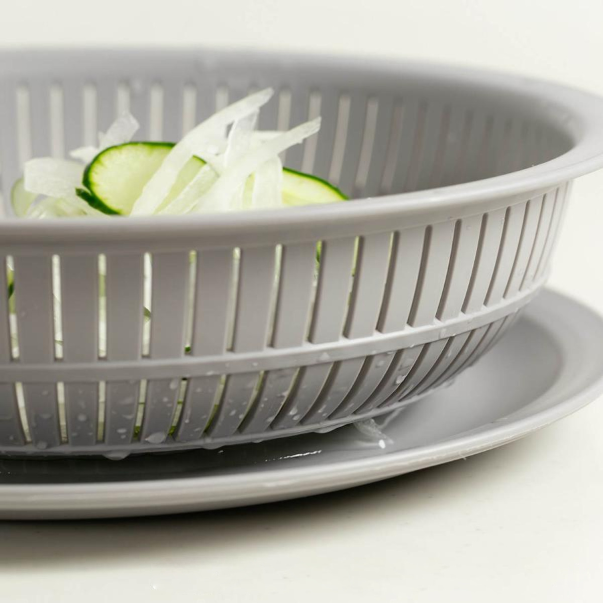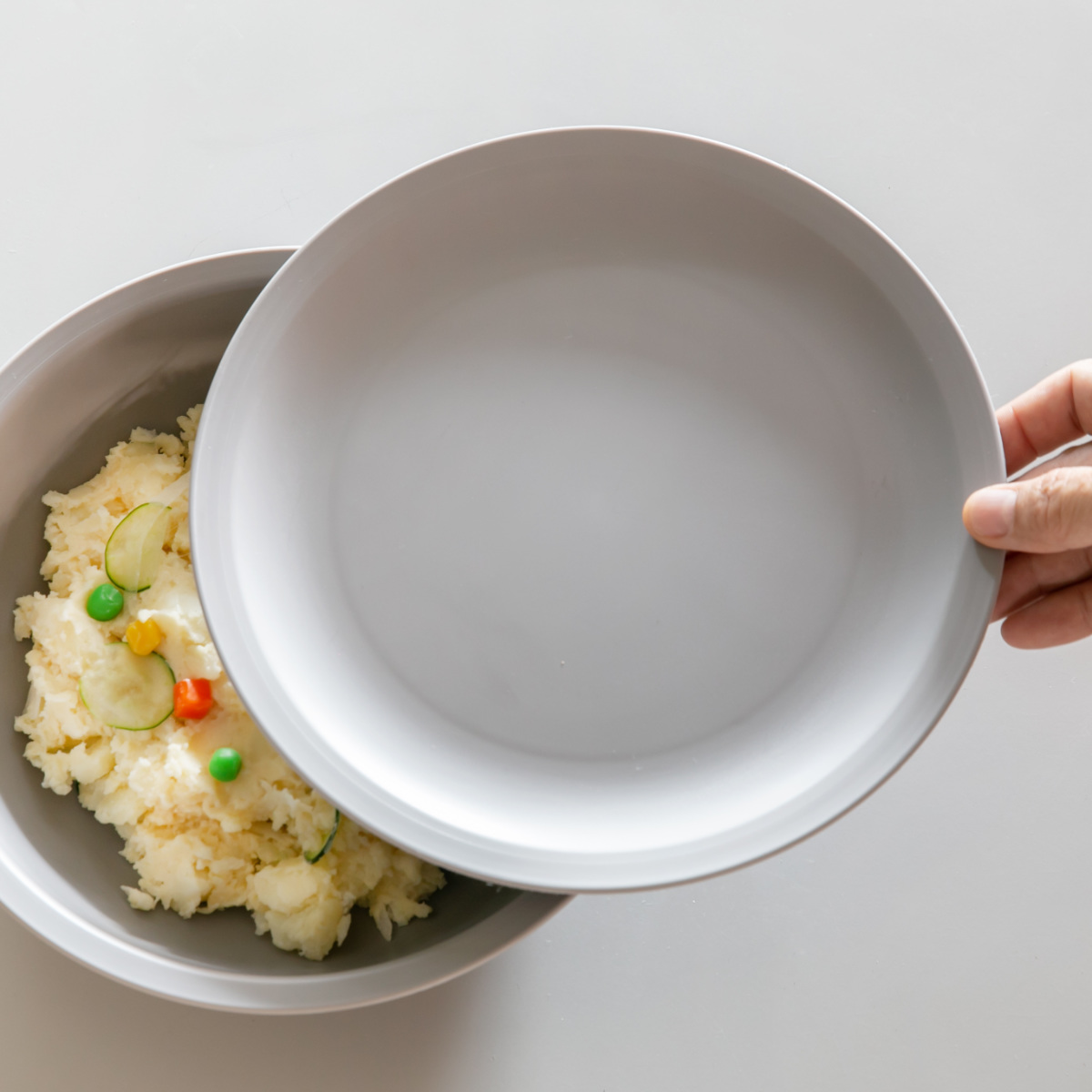 薄くて軽くて割れにくいのが特徴の、樹脂製プレートです。バットよりもかさばらず、お皿よりも扱いやすいのが魅力です。食材の一時置きにはもちろん、水切り時の水受けとしてや、蒸し器のお皿として、またボウルに乗せればフタとしても活躍し、様々な調理の下ごしらえを手助けします。