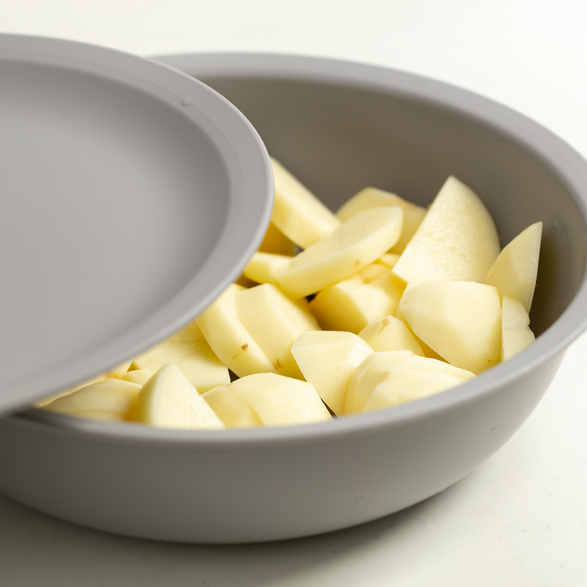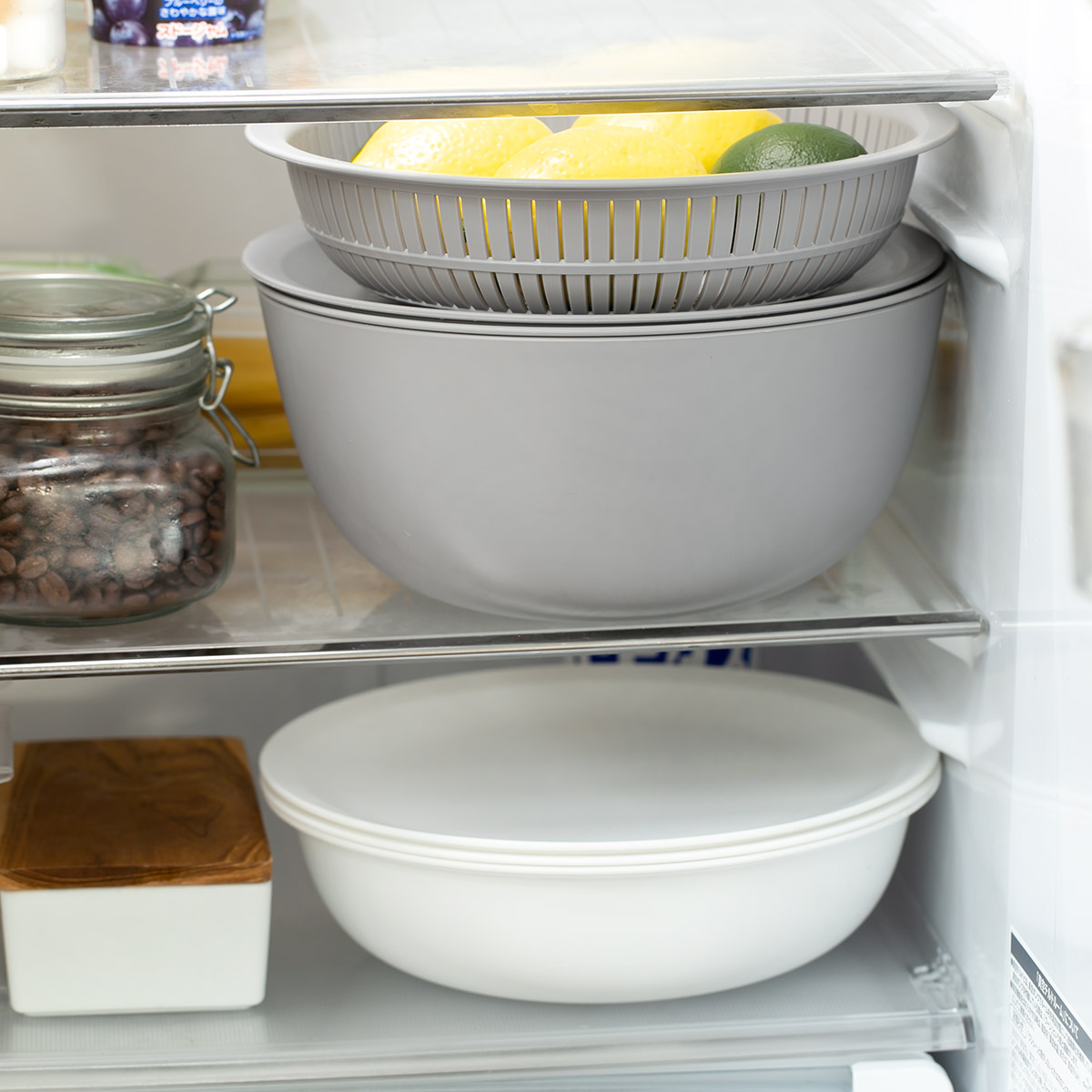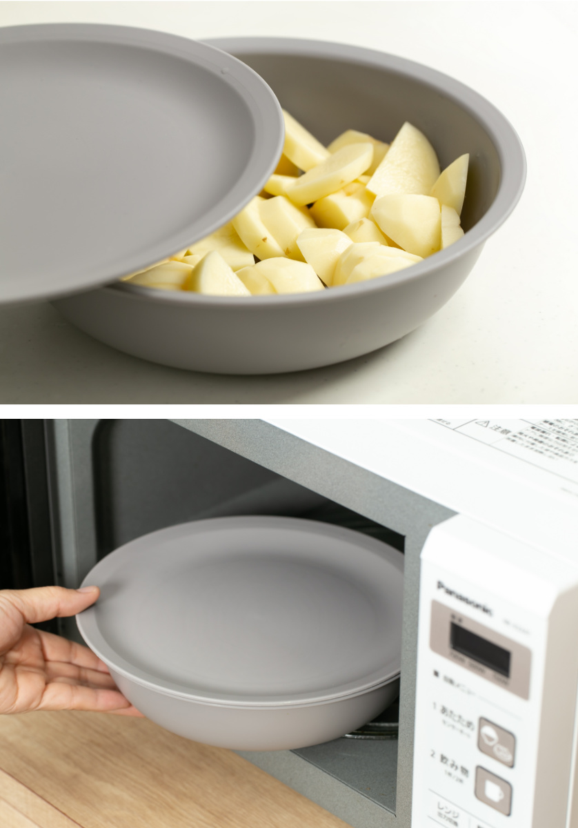 同シリーズのザル&ボウルと合わせると、より便利にお使いいただけます。電子レンジ使用OKなので、フタをしてレンジにかければ、蒸し野菜もお手軽に作れます。