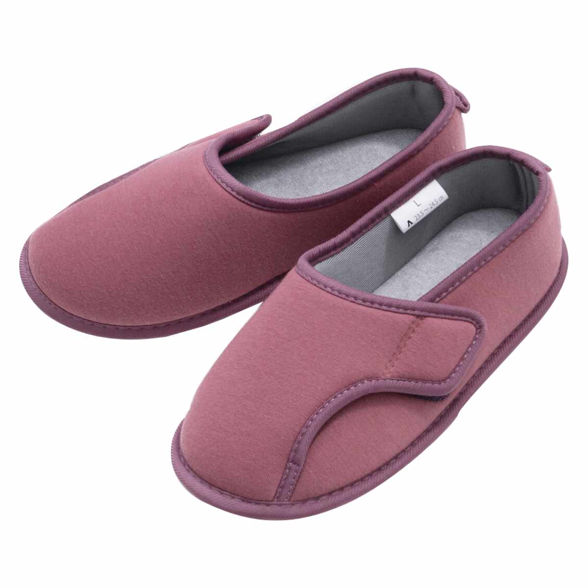 大きく開くマジックタイプで脱ぎ履きしやすい、しっかり底のルームシューズです。履き口も広めで足入れもスムーズにできます。足の状態に合わせて調整が可能なため、甲高の方にもおすすめです。