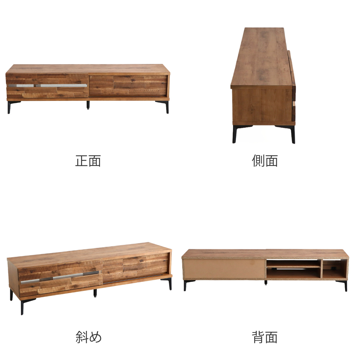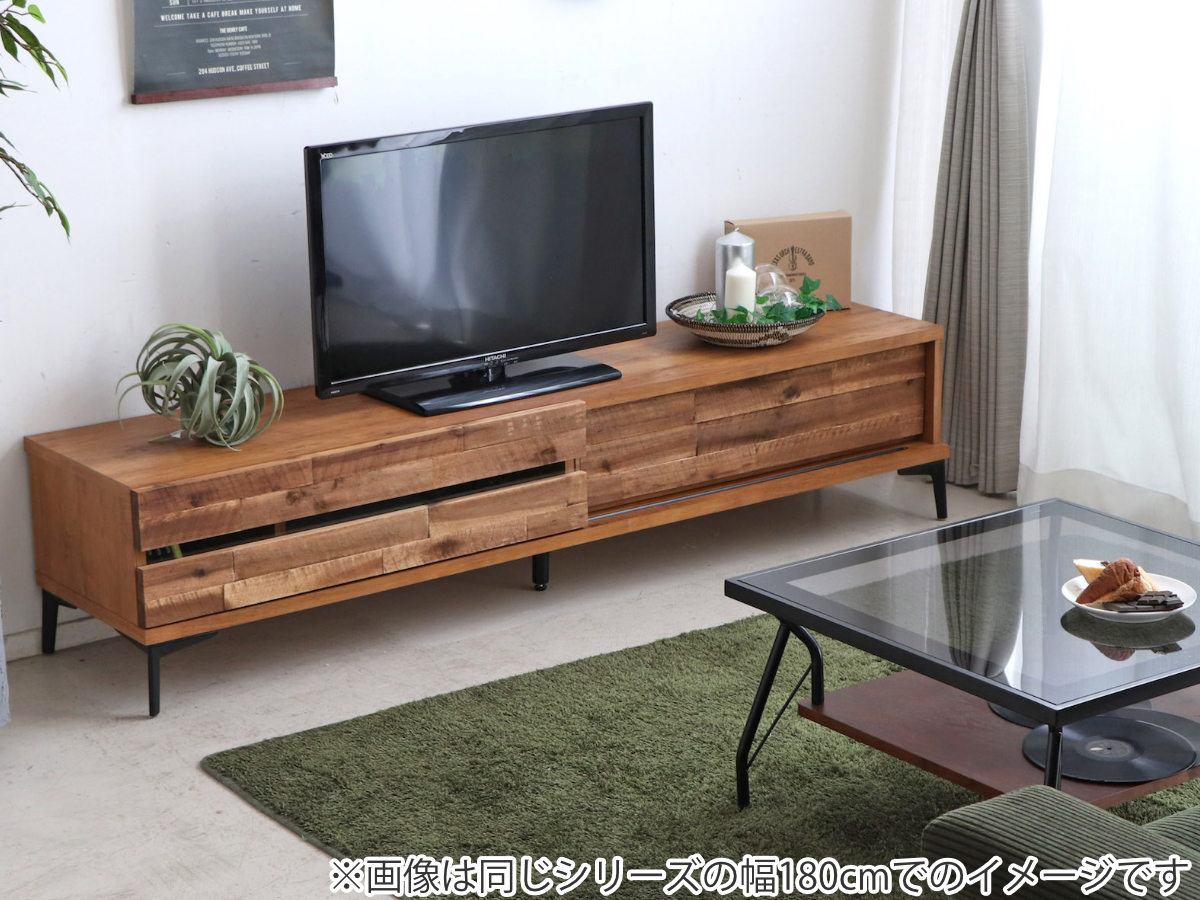 長年使用されたような味わい深い質感のアカシア無垢材を前板に使用した約150cm幅のTVボードです。存在感のある無垢材にブラックカラーのスチール脚を組み合わせたデザインは、無骨で重厚感がありインダストリアルな空間が作れます。