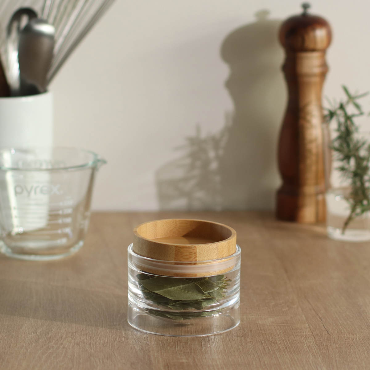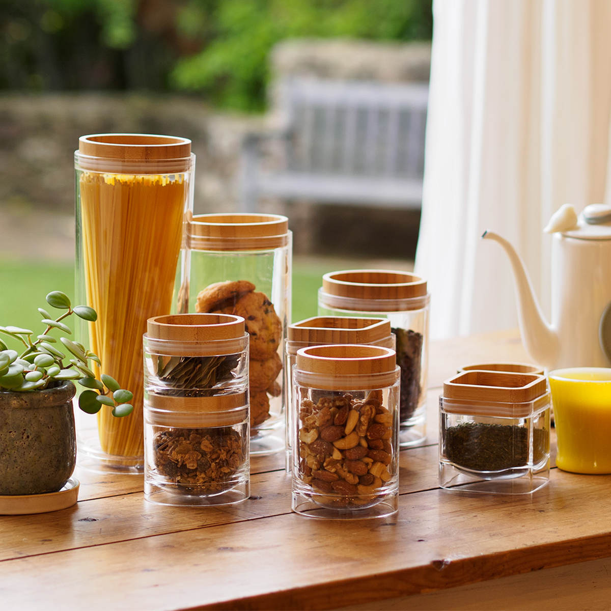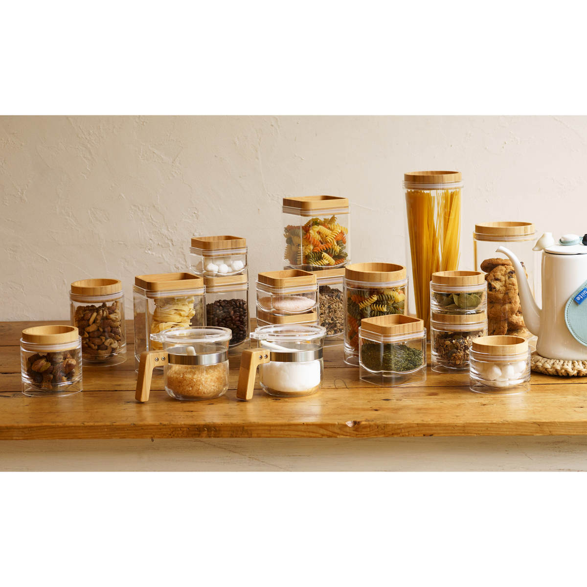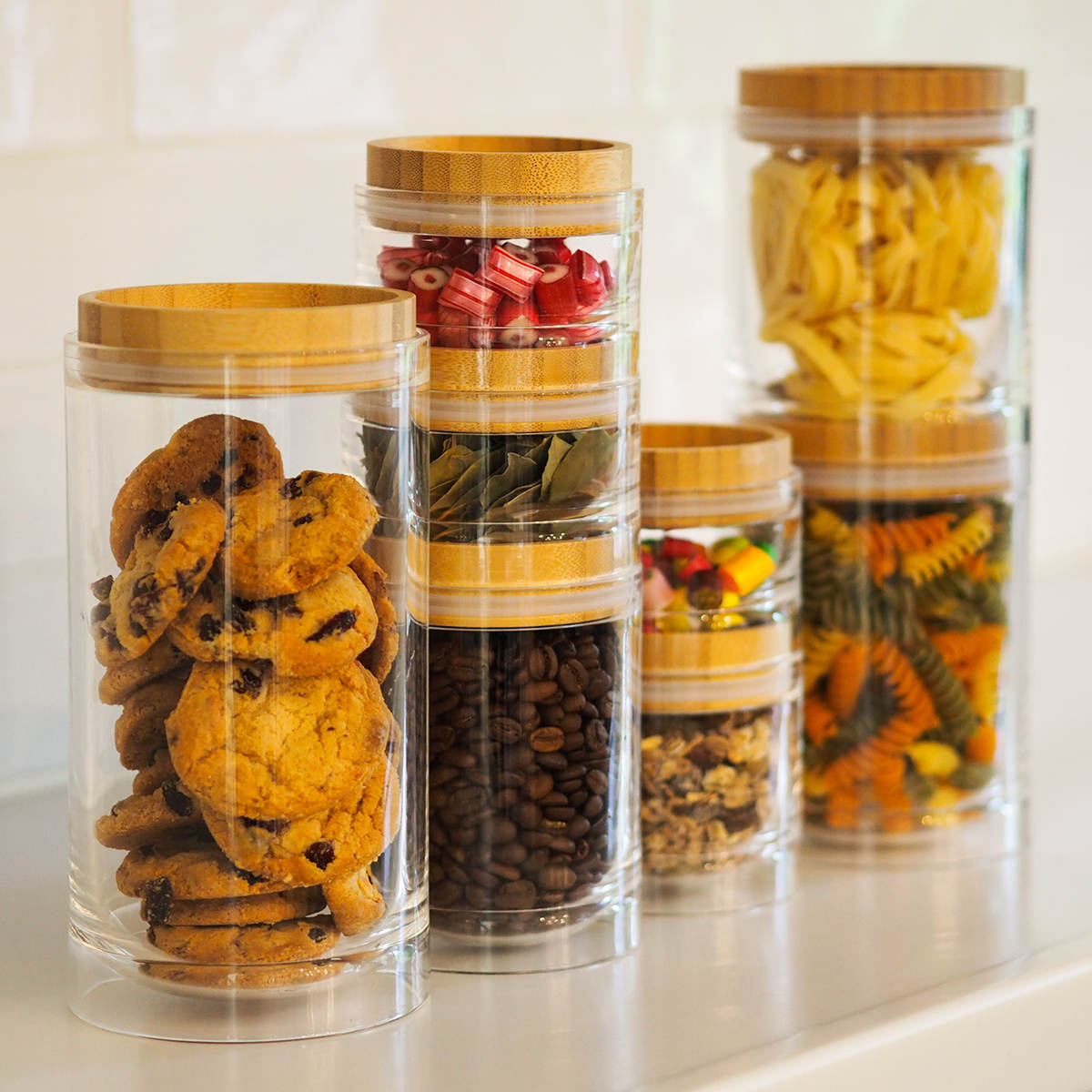 限られたキッチンスペースにスタッキングして収納できる、重なるキャニスターです。バンブー素材でナチュラルな雰囲気の蓋には立ち上がりが付いており、キャニスターの底にぴったりはまります。ぐらぐらせず、安定して積み重ねることが可能です。