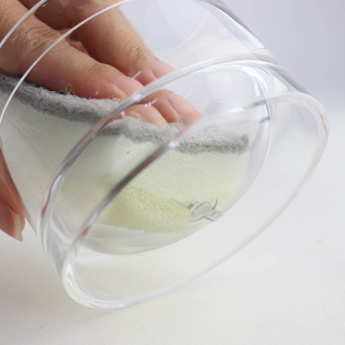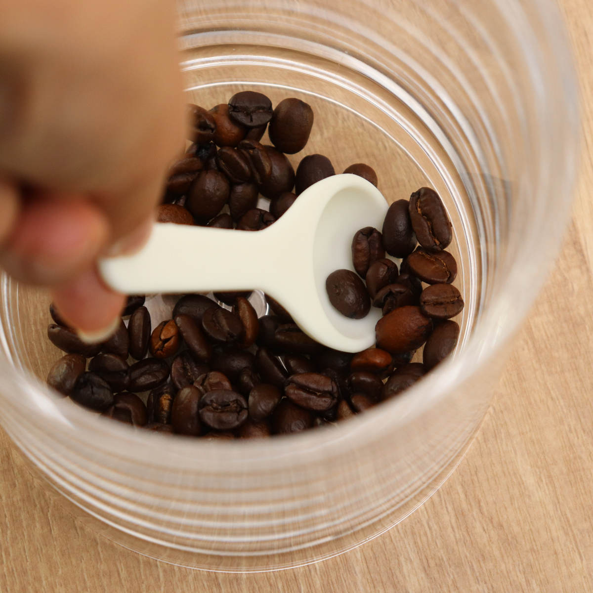 容器本体にはガラスのような透明感がありながら軽くて扱いやすい素材を使用しています。中身が自然と目に入るので残量チェックもスムーズです。
