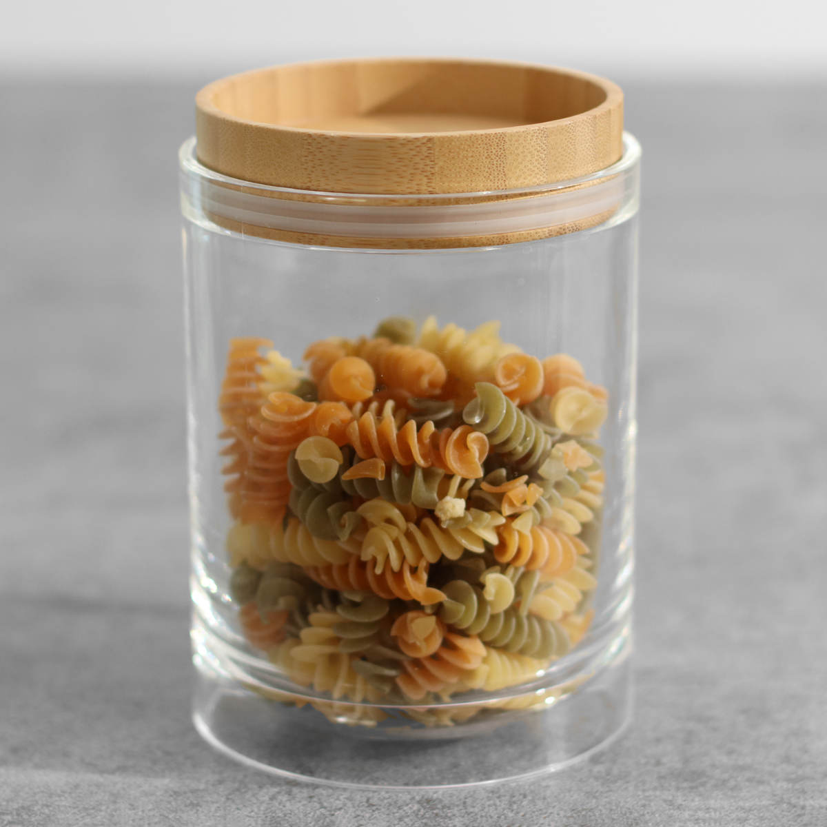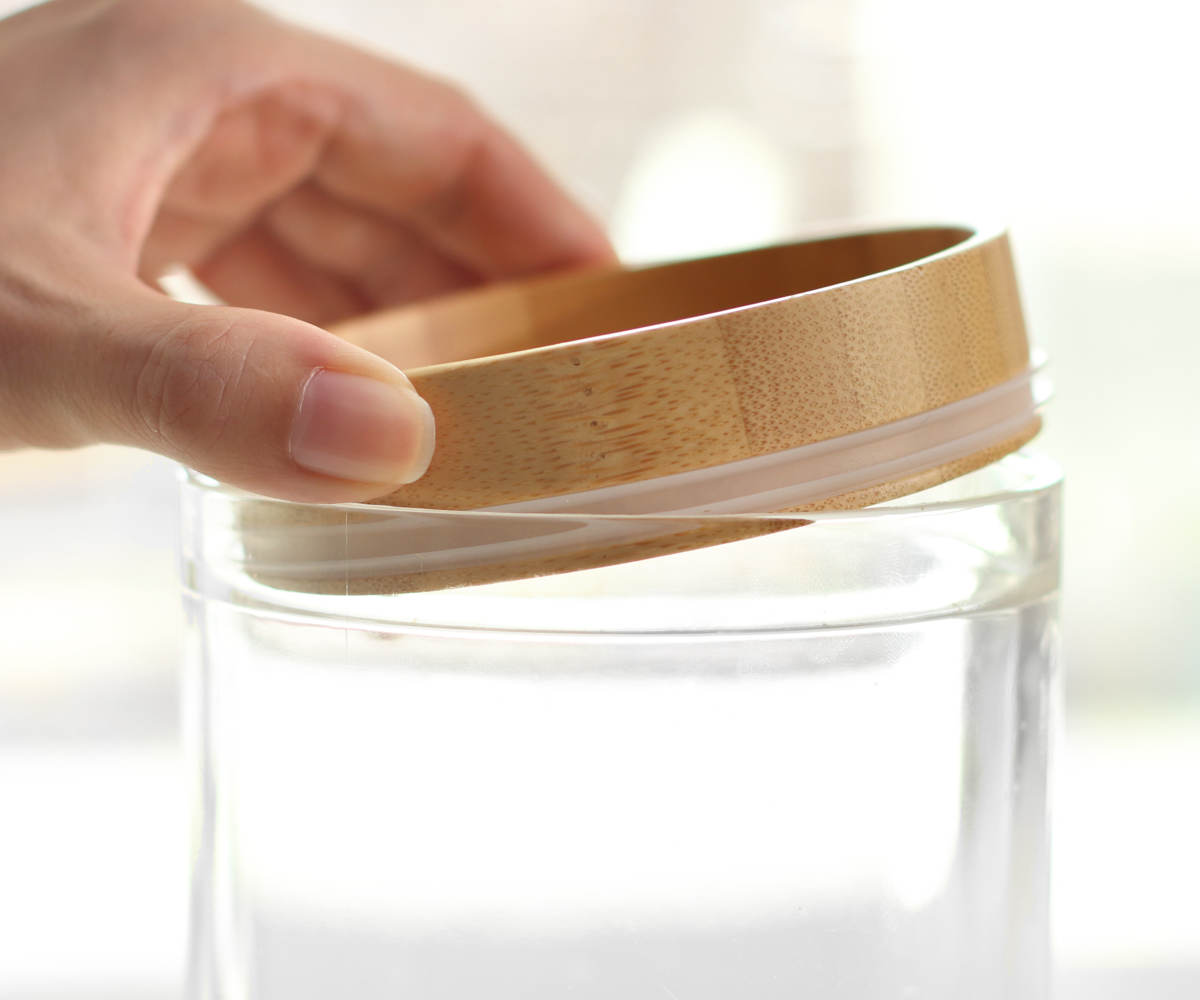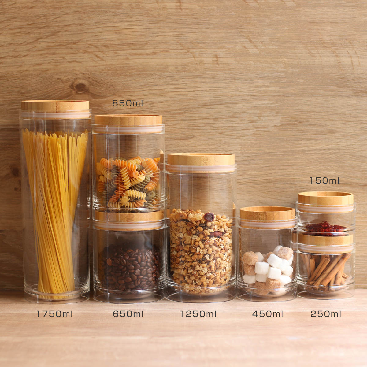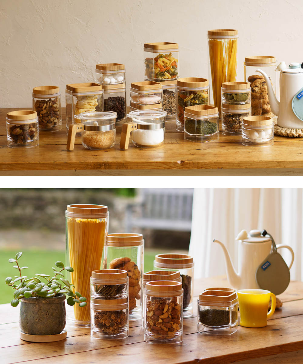 限られたキッチンスペースにスタッキングして収納できる、重なるキャニスターです。バンブー素材でナチュラルな雰囲気の蓋には立ち上がりが付いており、キャニスターの底にぴったりはまります。ぐらぐらせず、安定して積み重ねることが可能です。