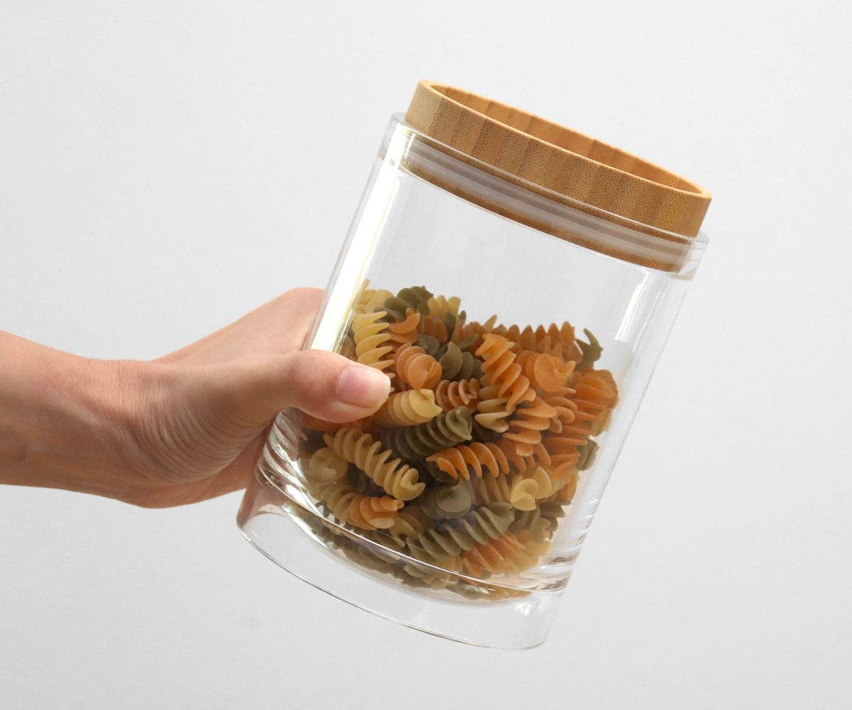 容量は850mlと大きめサイズ。キッチンでショートパスタやお菓子などの保存はもちろん、粉洗剤やボール型洗剤などを入れる容器としてランドリー周りで使うのもおすすめです。150mlと250mlを重ねると、850mlと高さが揃います。850mlを2個重ねると1750mlと高さが揃います。